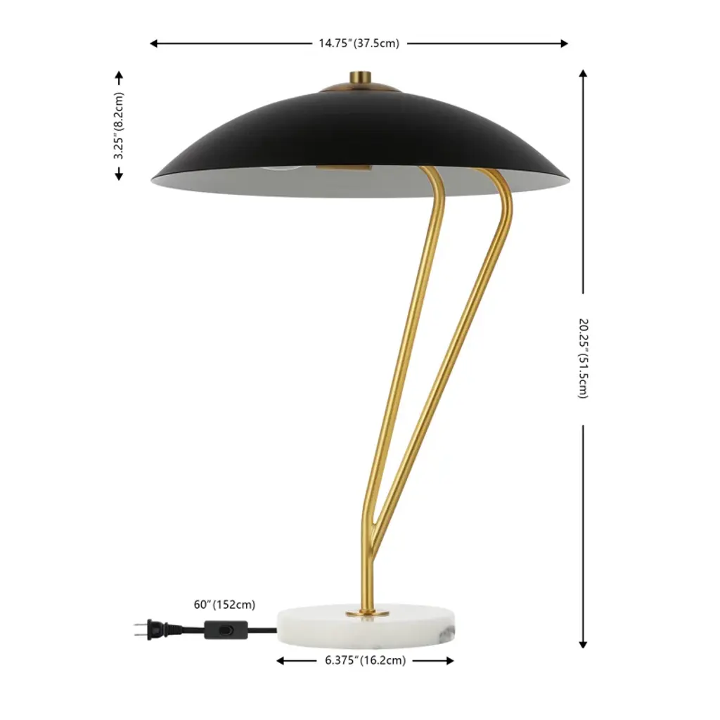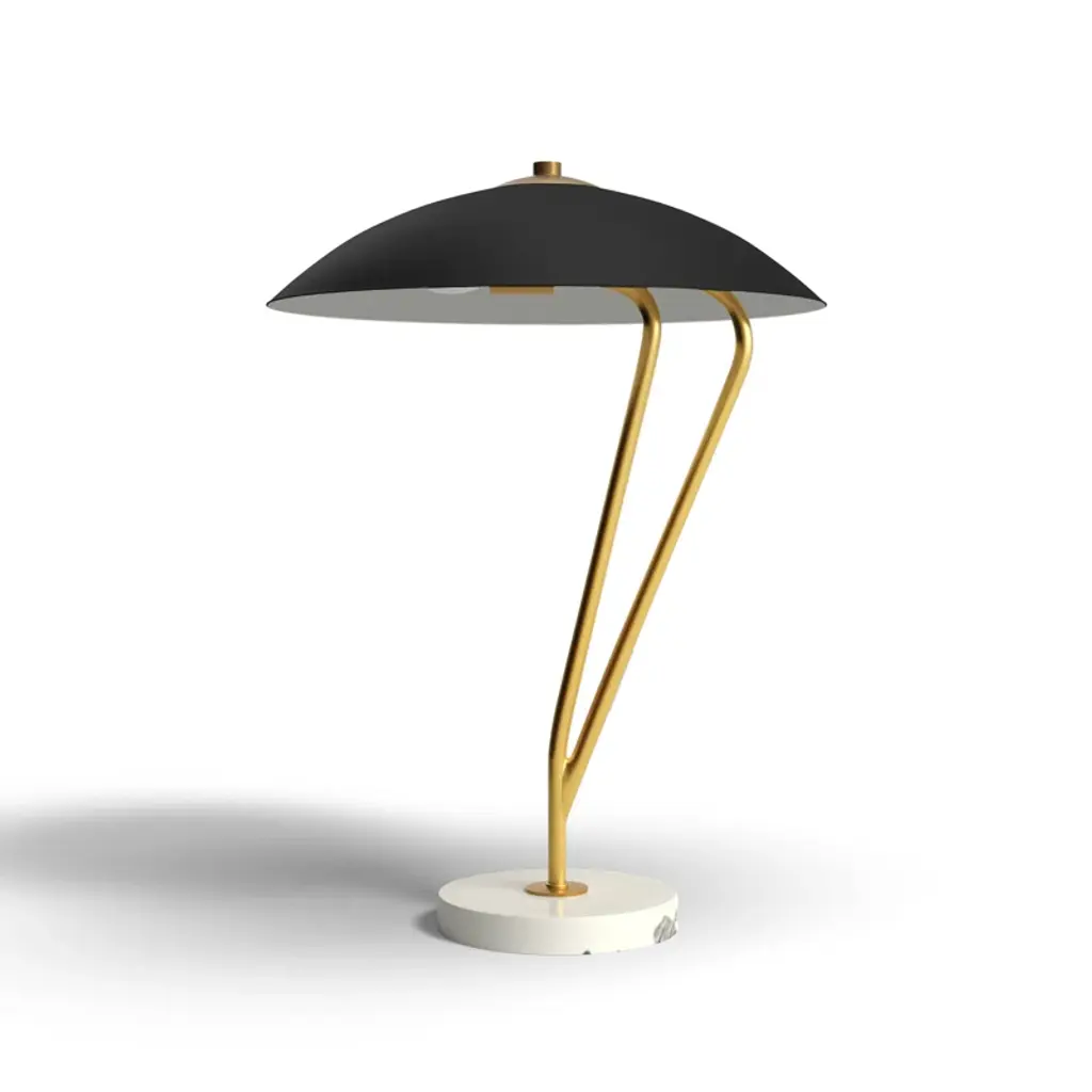 Enliven your home with our sculptural and beautifully minimalist Kenta table lamp. The dramatic appeal of the table lamp is complemented by a metal dome shade. Completed with gleaming brass hardware and a white marble base, our table lamp adds a refined touch of luxury to any corner. It radiates focused light to illuminate your tabletop, desk, or nightstand.