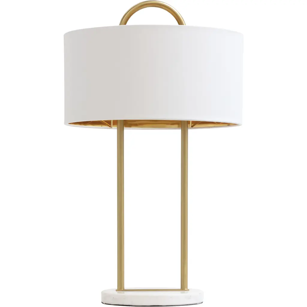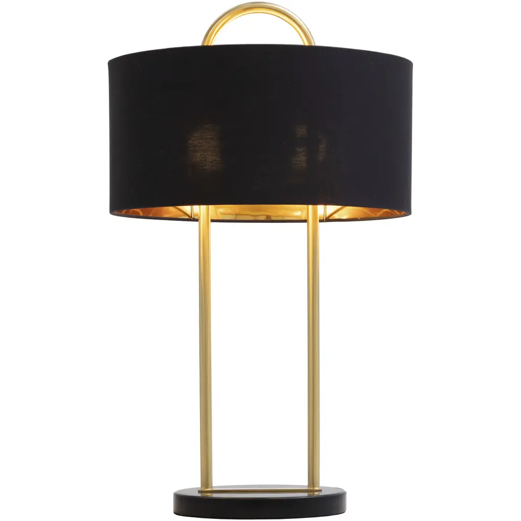Brighten up any space with this table lamp that exudes modern style. Features a matte black fabric lamp shade and brass iron hardware. Completed with a black marble base. As marble is a natural material, unique veining, pitting, fissures, micro-cracks and colour variations are all characteristics that add to the uniqueness and beauty of each piece.