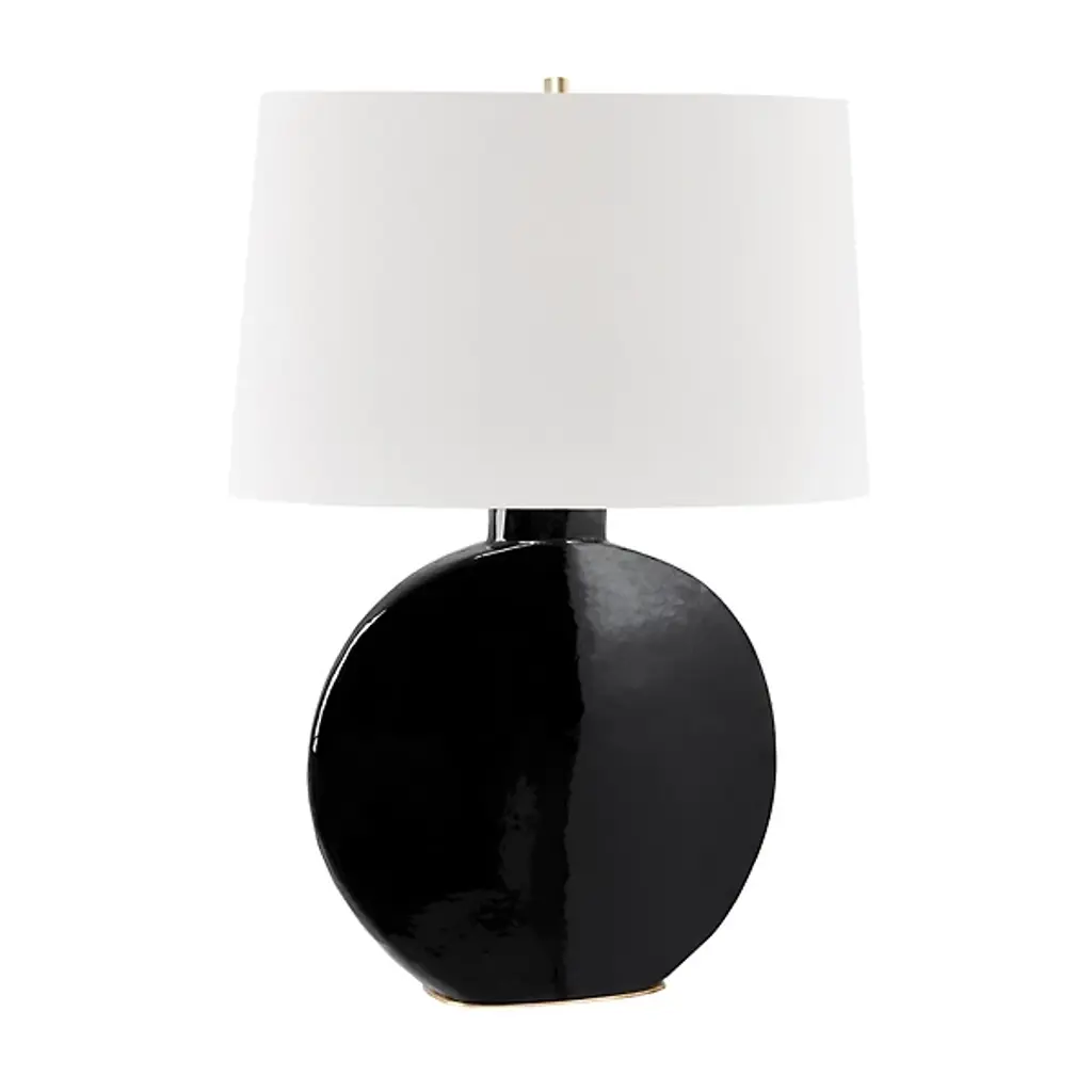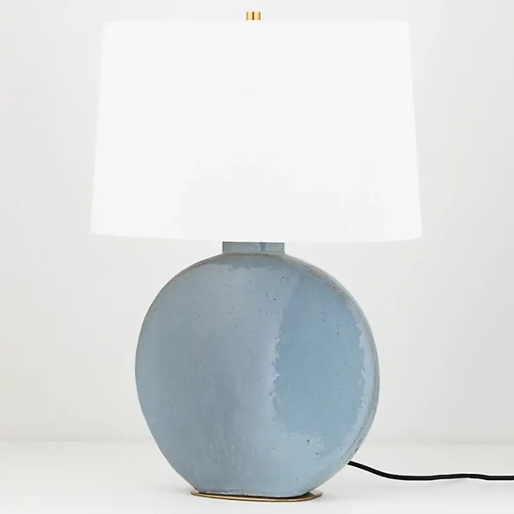 Bring the soothing and simple form of the Kimball Table Lamp from Hudson Valley Lighting to your modern home. Clean and expressive, the thin and rounded body extends a brief neck before mounting an oversized, drum-shaped shade composed of Belgian linen. A single bulb rests at the center of the linen shade. It emits a warm and inviting glow into the space as it evenly diffuses through the soft material.