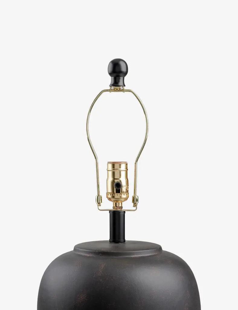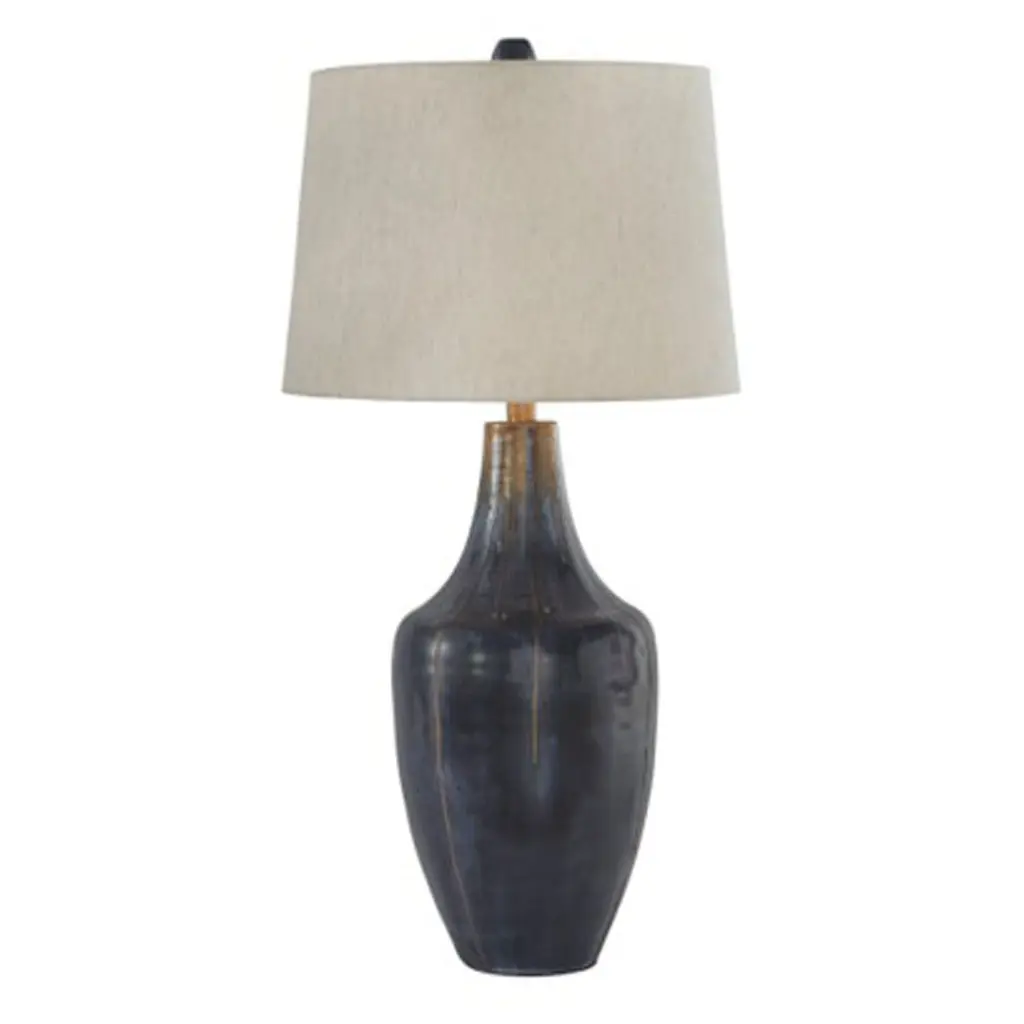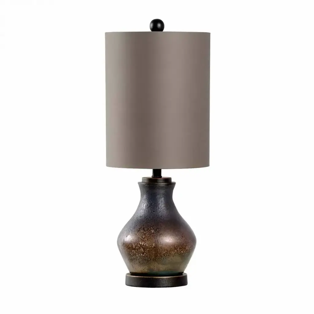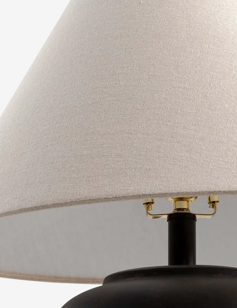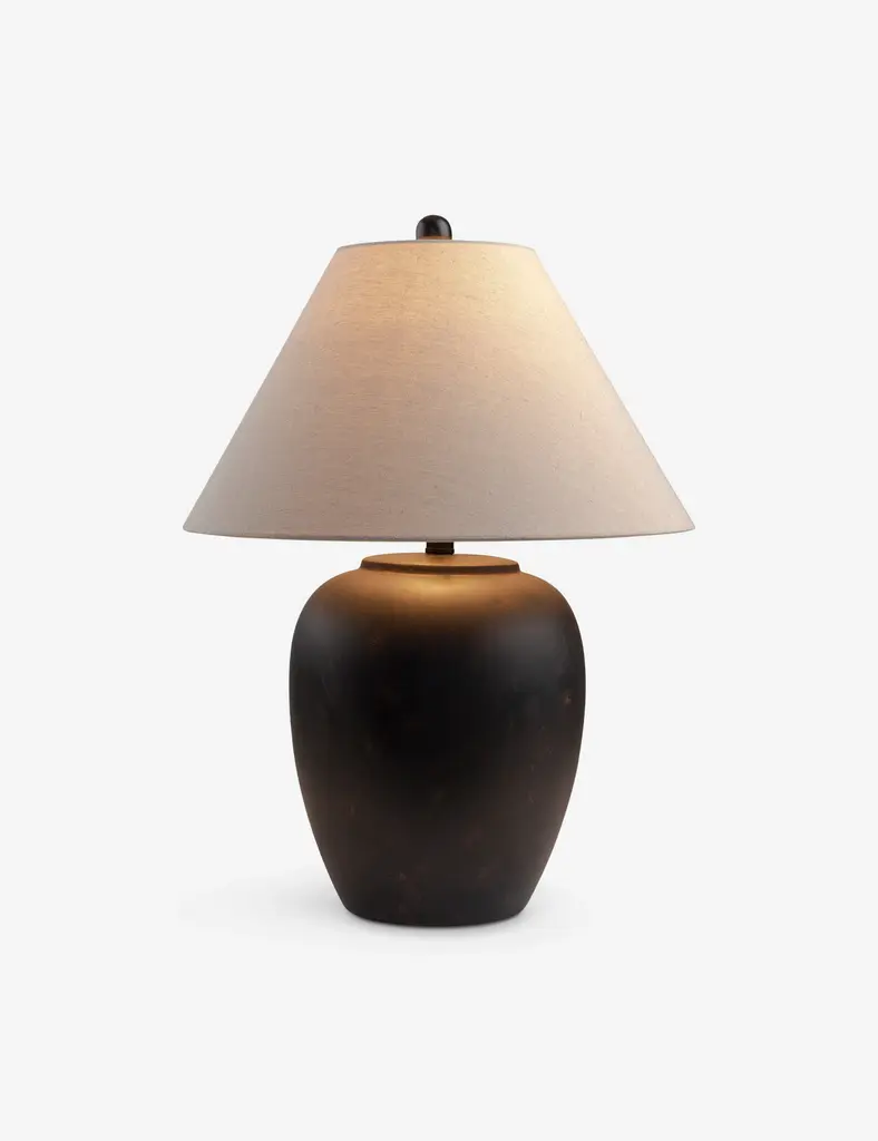 Simply stunningthe Kimora table lamp brings a timeless look to any tabletop. Its sleek vessel shape is topped with a beige linen shade that filters a warm pool of light. This lamp's black finish and matching finial offer a versatile fit with standout appeal for transitional decor.