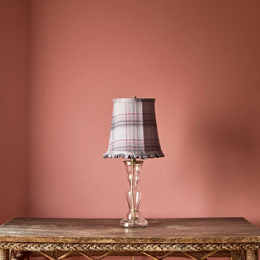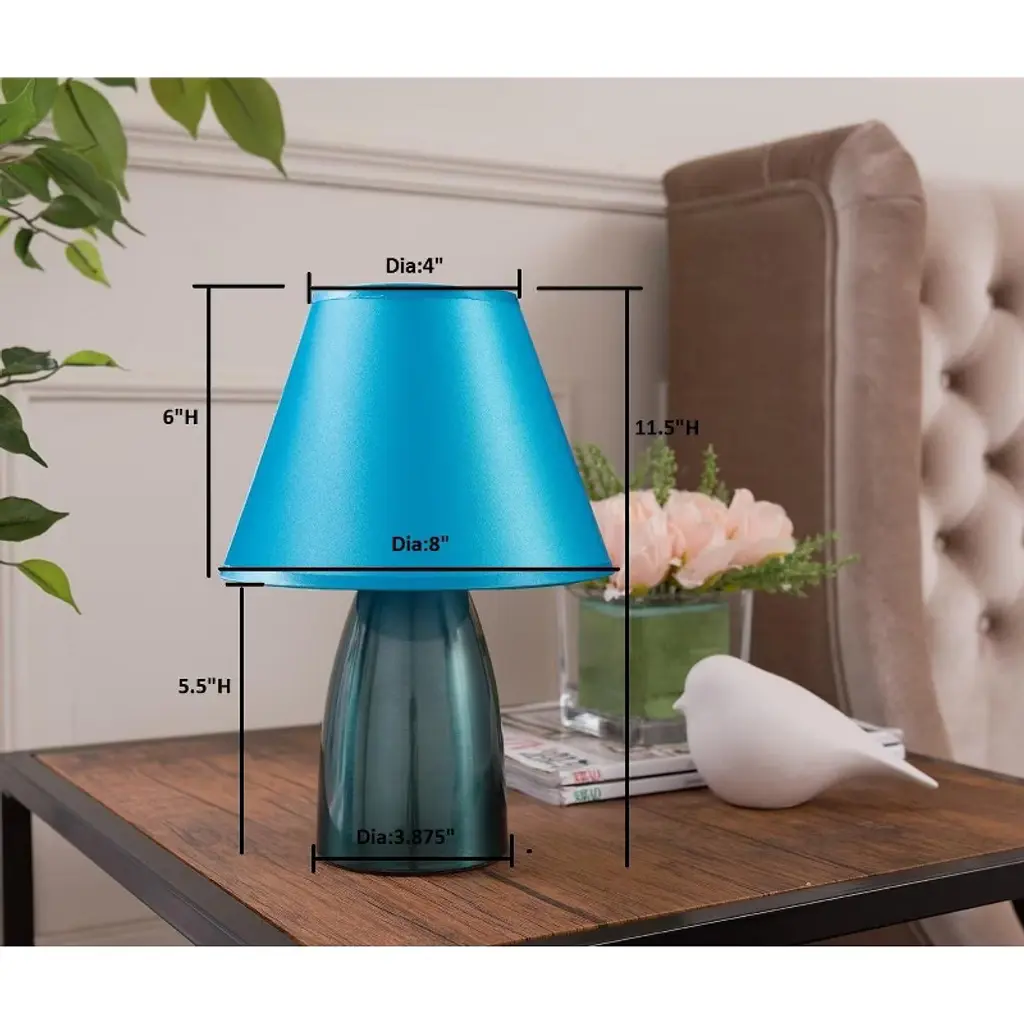 The Wayne Table Lamp with Fabric Shade infuses fun, fashion, and color into a conventional table lamp form, for a thoroughly modern effect. This contemporary lamp lightens the mood and ambiance of any décor, with its glossy, reflective sheen and your choice of available colors. The small footprint and single 40-watt bulb make this lamp a perfect accent to any table, desk, or nightstand.