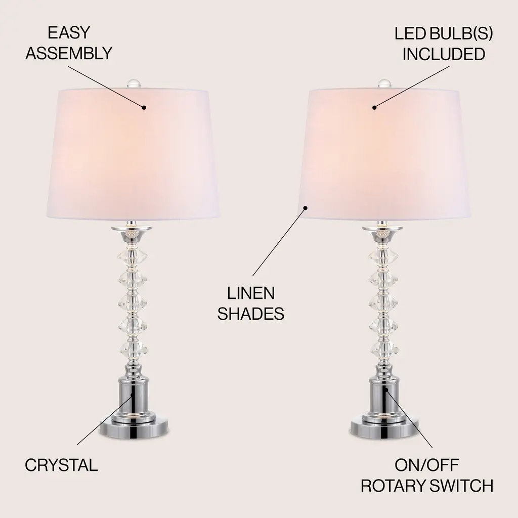 Kinsley 28" Crystal Led Table Lamp, Clear/chrome (Set Of 2) By Jonathan Y - Clear/chrome