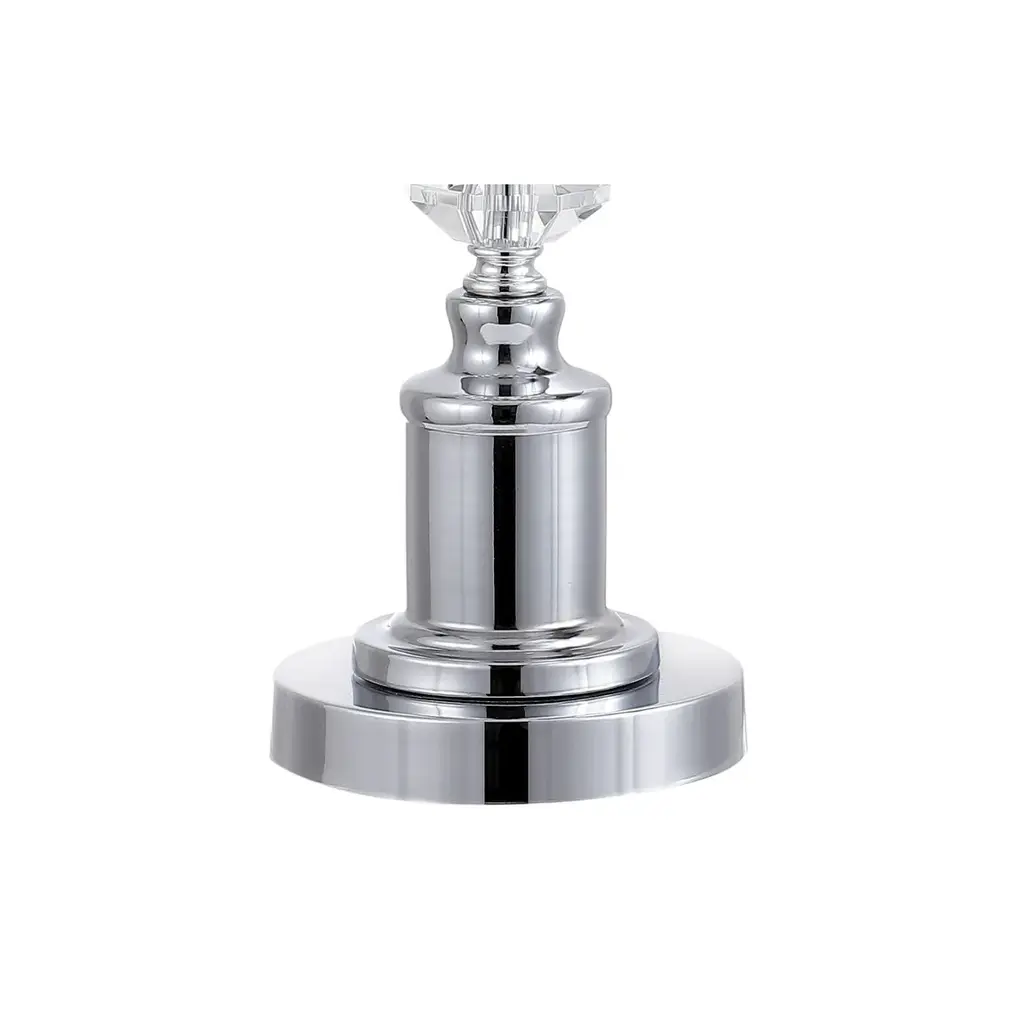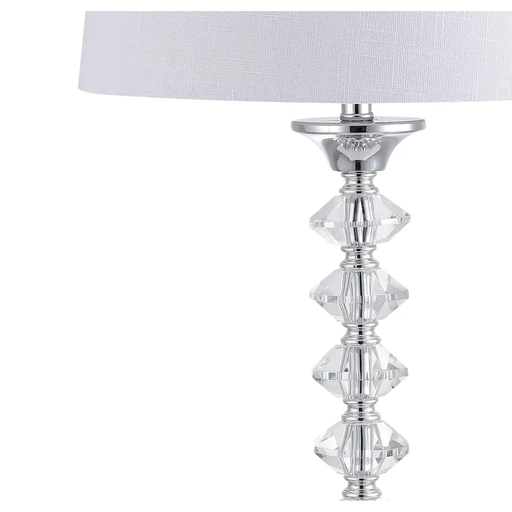 Inspired by antique candlesticks, this crystal lamp base evokes classic elegance with modern functionality. The cord is wrapped with silk, in the traditional style, but the wiring accommodates any standard 100-watt bulb, including LED. A slightly tapered cotton drum shade adds a contemporary finishing touch on this classic style. Features:Dimensions:About us:You see a lamp.We see a decorative work of art.A perfectly curved shade casts a dramatic shadow on a floor. A silk cord you never want to hide. Compatible with LED lightbulbs: as easy on the environment as they are on the eyes. The JONATHAN Y Lighting collection considers every detail from impeccably sourced materials to designer styling. And our prices are so attractive, we've transformed a functional necessity into a fashion accessory.JONATHAN Y Lighting - a fashion revolution in home decor.
