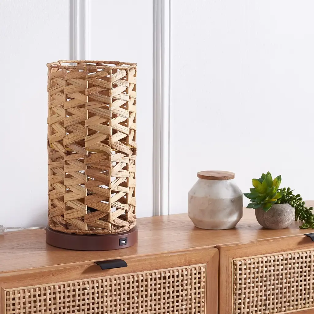 Illuminate your space with the kirin 15 inch natural water hyacinth and metal table lamp. This stylish lamp merges the organic texture of water hyacinth with sleek metal accents, creating a perfect blend of nature and modernity. Its neutral tones complement any decor, adding a touch of simplicity to your living area or workspace. The integrated USB port enhances functionality, allowing you to charge your devices with ease. Whether placed on a bedside table or in the living room, the kirin table lamp offers a warm and inviting glow that transforms any setting. Its design not only lights up your room but also serves as a charming focal point. Experience the harmony of natural materials and contemporary design with this elegant table lamp.