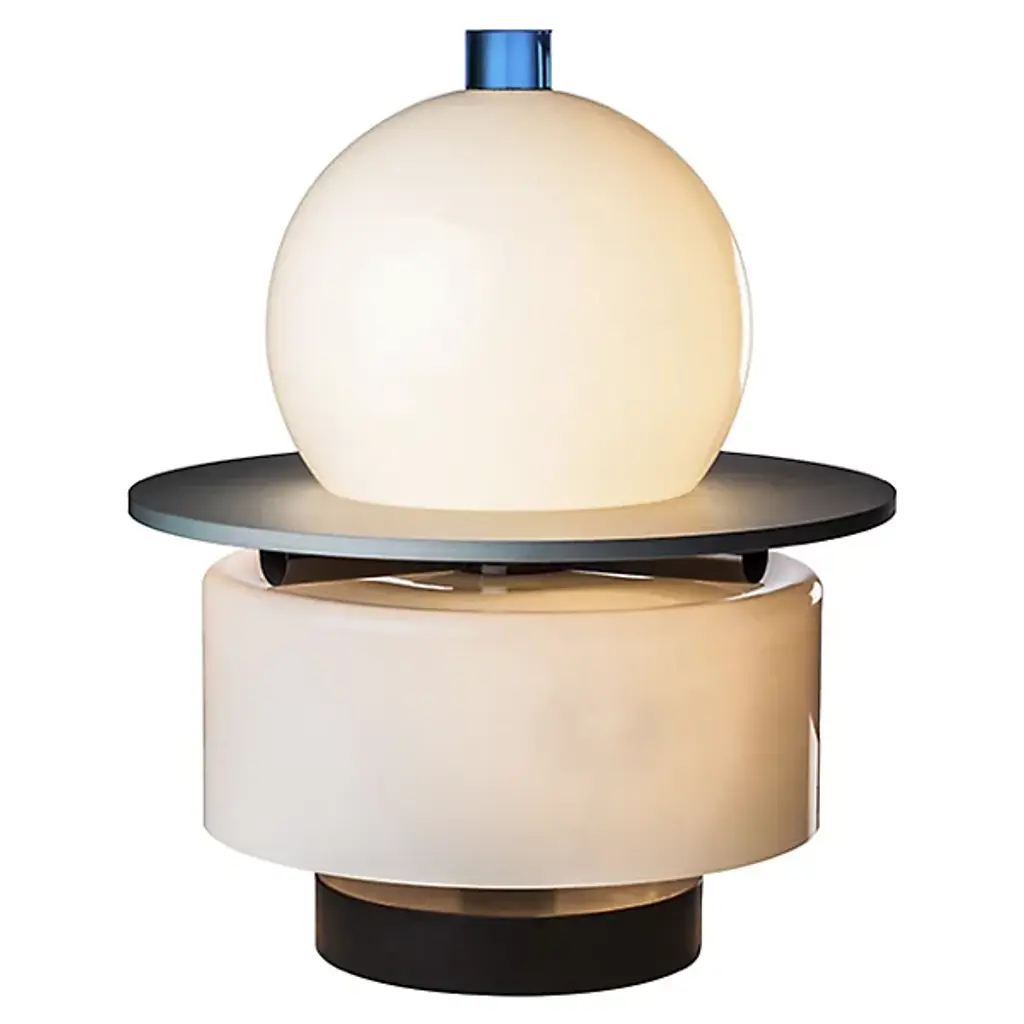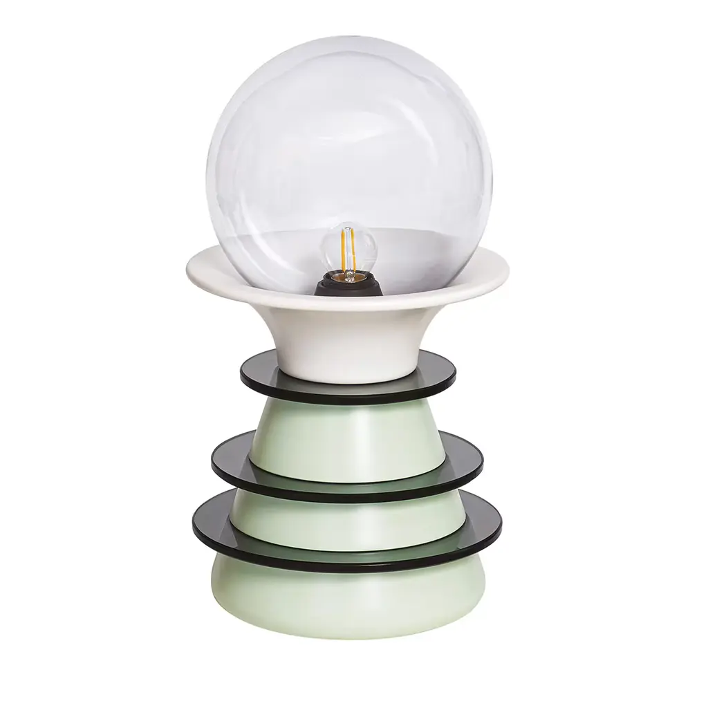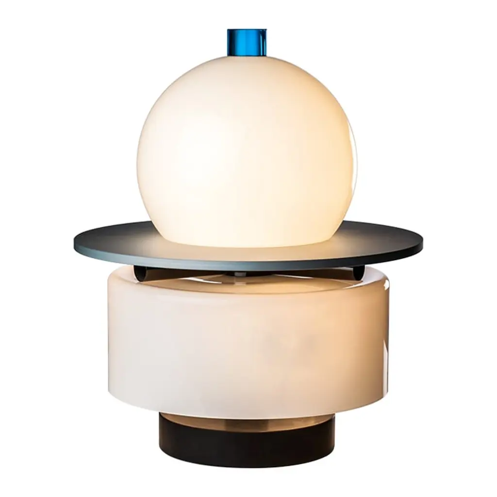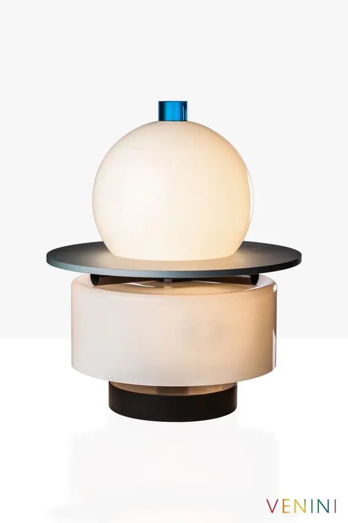 Kiritam is a table lamp made of mixed technique blown glass and marble base. Its name evokes its ancient meaning: "crown", from the Sanskrit term kirīṭam. Its shape recalls those of the most worshipped and depicted Hindu deities. But gold gives way to glass. Kiritam is available in a numbered edition table lamp version.“When we imagine glass objects, we feel very special emotions: we imagine light and colours that we cannot touch. Then, suddenly, there is light and there are colours, yet we still cannot touch them. They remain weightless, without temperature, living only in our imagination. All this produces very special emotions.” (Ettore Sottsass)Colors:Milk-white / AcquamarineLight source:1 x max 12W LED E27 + 3 x max 8W LED E14 - DimmerableNumbered Edition
