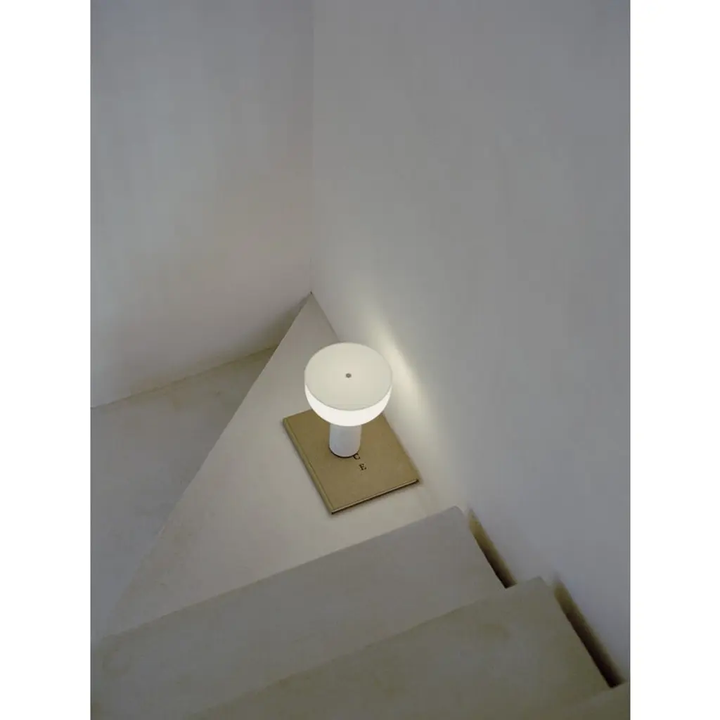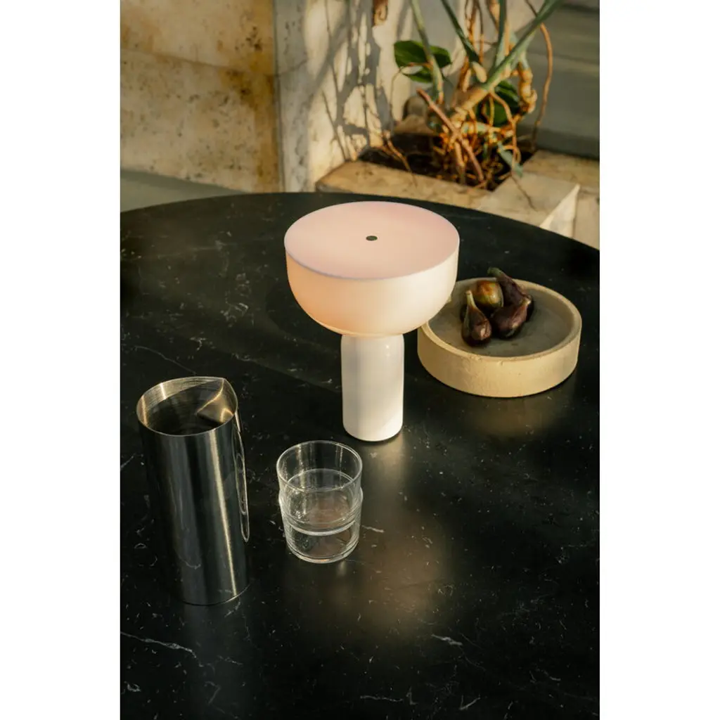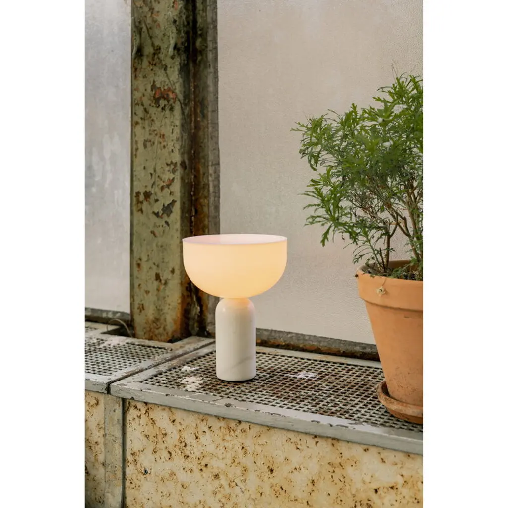 New Works’ Kizu table lamp, designed by Lars Tornøe, defies the laws of gravity with a bold combination of geometrical shapes. The charm of the Kizu lamp comes from the hemisphere-shaped diffuser that seems to be balancing upside down on a rounded marble base. The white acrylic shade provides a smooth, pleasant light with no glare, making the lamp both impressive and calming at the same time. Kizu is a lovable eye-catcher in the bedroom, living room or elsewhere in the house. The portable Kizu lamp has a USB-rechargeable battery that provides light for 10 hours at 100% light setting. The cordless table lamp can be dimmed to three levels by tapping the small metal circle on the top.
