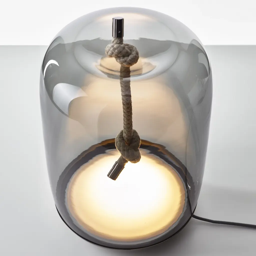 A study in contrast and craftsmanship, the Knot Cilindro Table Lamp from Brokis combines industrial strength with poetic refinement. Designed by Chiaramonte Marin, this sculptural piece pairs handblown Czech glass with bold, knotted rope—an unexpected union that feels both grounded and ethereal. The transparent cylindrical shade gives the warm LED glow a weightless quality, while the thick cord appears to cinch the glass in place, defying gravity and expectation. A quietly dramatic addition to any space, it’s a testament to Brokis’ mastery of material and form. Highlights