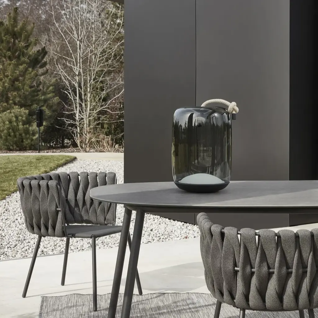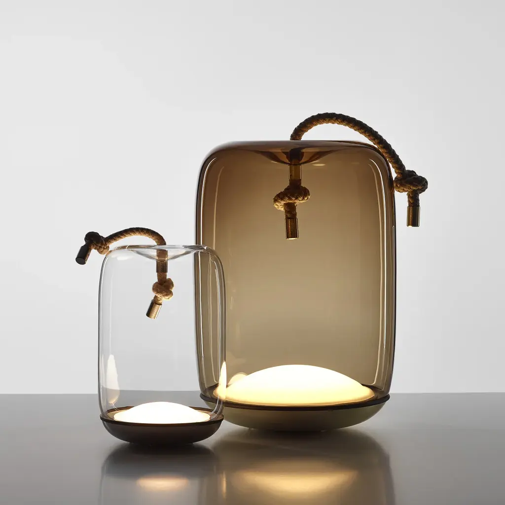 Rugged meets refined in the Knot Cilindro Outdoor Portable LED Table Lamp from Brokis—a sculptural piece that brings tactile elegance to open-air settings. Designed by Chiaramonte Marin, this portable version of the iconic Knot series features a cylindrical handblown glass shade cinched with a thick, maritime-style rope—an arresting detail that evokes both tension and harmony. Outfitted with a rechargeable LED, it delivers a warm, ambient glow wherever you take it—perfect for terraces, garden dinners, or evening escapes. Durable, distinctive, and undeniably stylish, it’s outdoor lighting with an artful edge. Highlights
