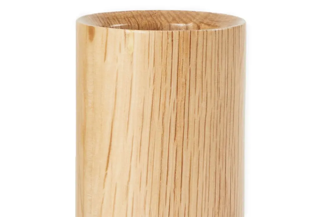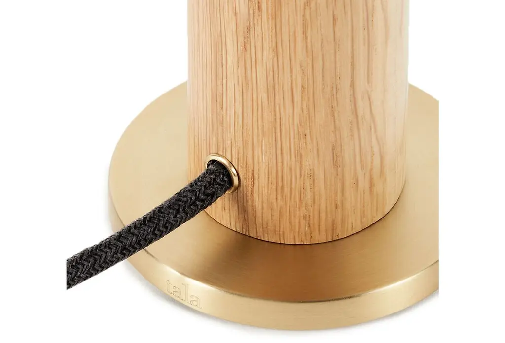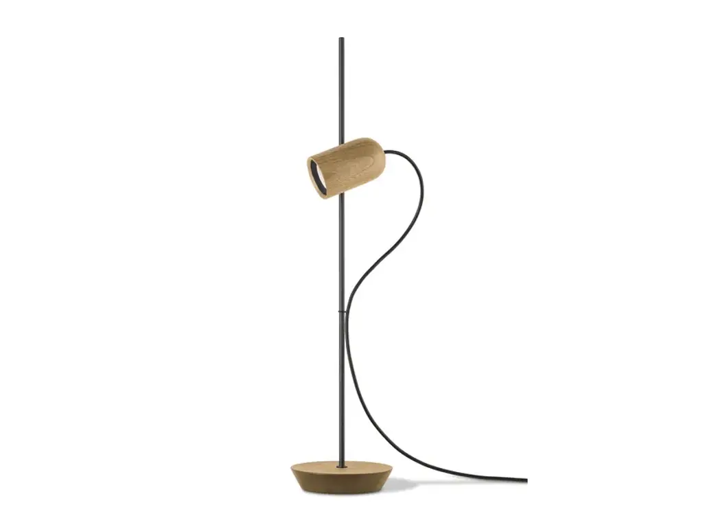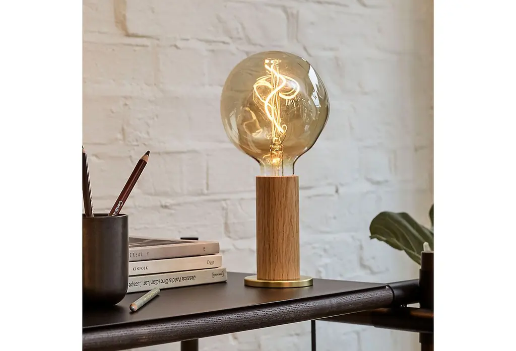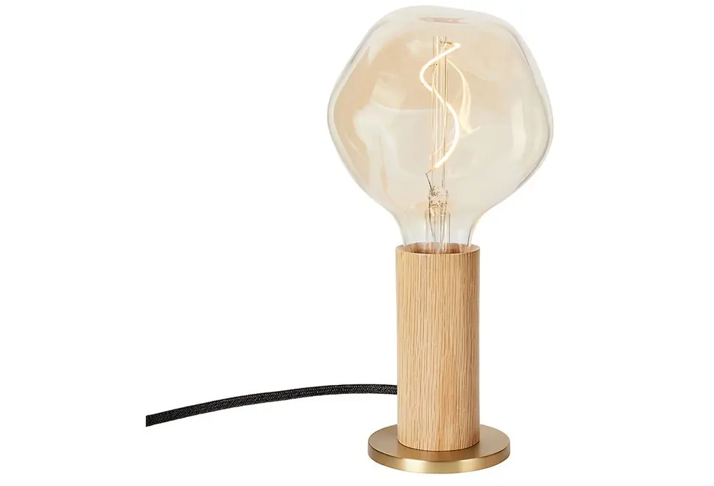 A cylinder of hand-turned, FSC-certified oak supports a bulb made of mouth-blown glass. Adding to the artisanal allure: The bulb's spiral filament was designed to mimic the Fibonacci sequence. A dimmer makes it easy to change the mood of the room.