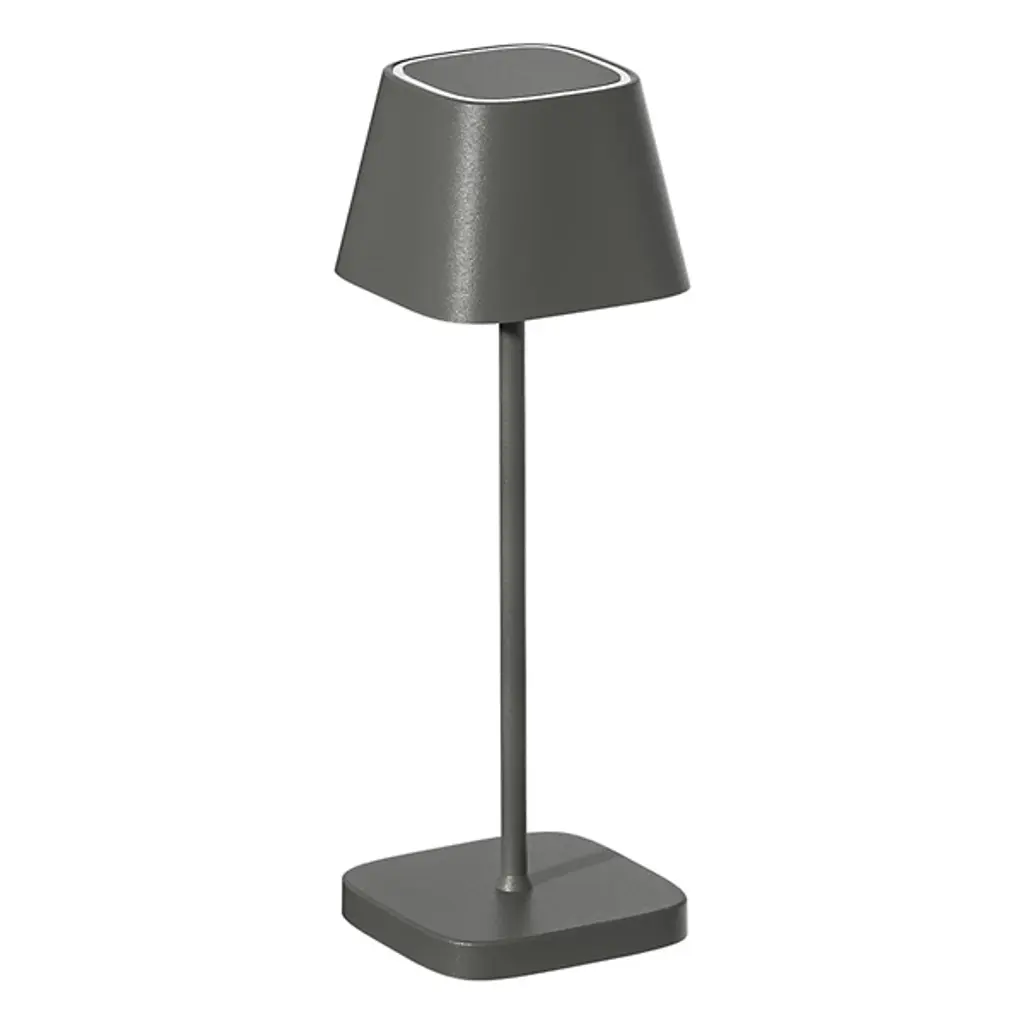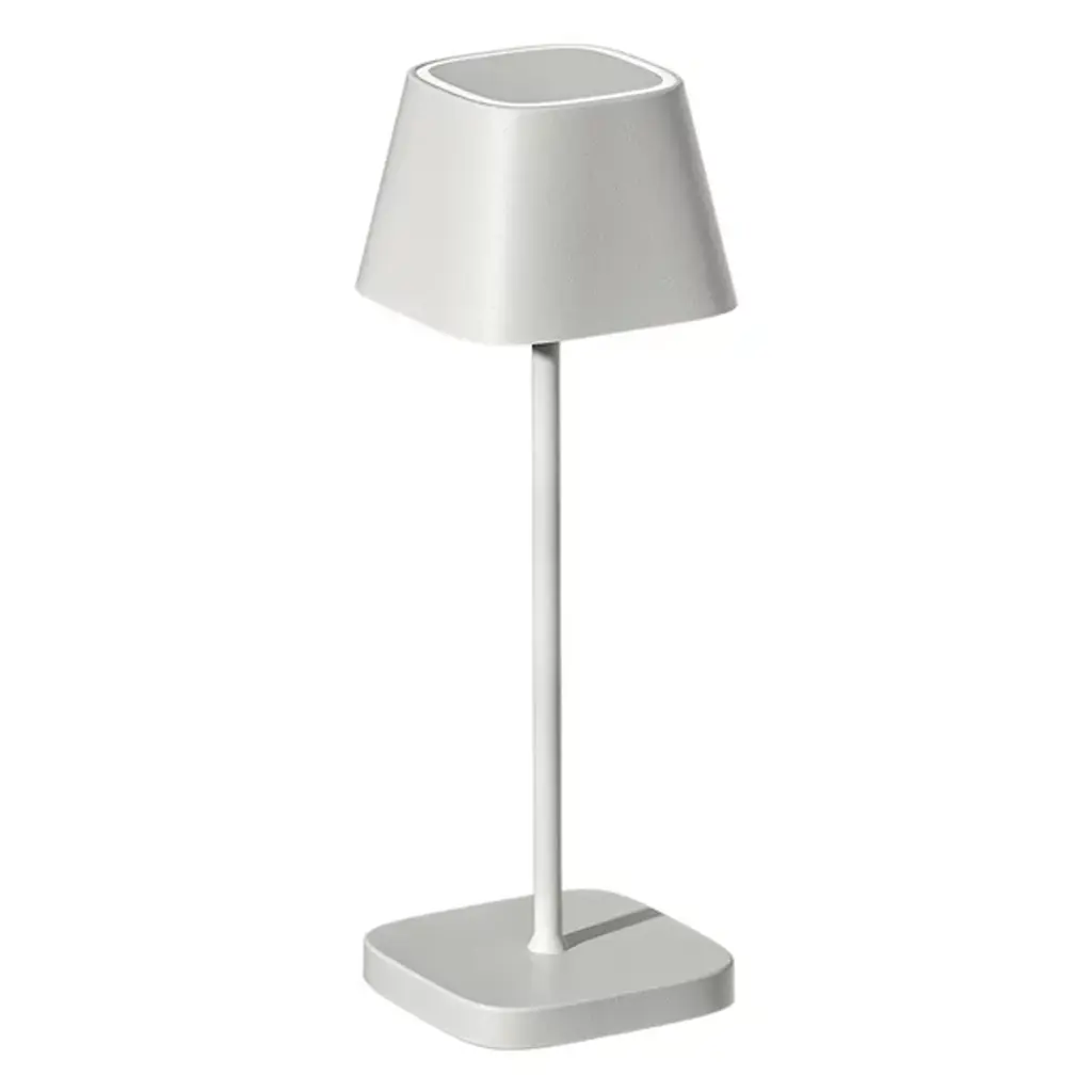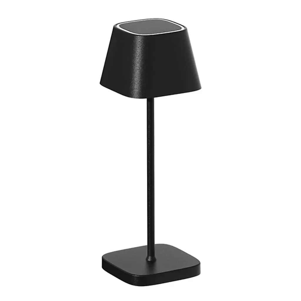 The Kodu LED Mini Table Lamp from Blomus is perfect for adding a focused wash of reflected radiance and downlight to dining tables, sideboards, or desk spaces. A rechargeable minimalist construction that can stand free from cords and cables, it uses a curve-cornered square base to support a slim stem, made of powder-coated aluminum. A flared shade surrounds wet-listed LED lamping at the top, activated via a head switch, and offering hours of ample ambiance while shifting between three warm light settings.