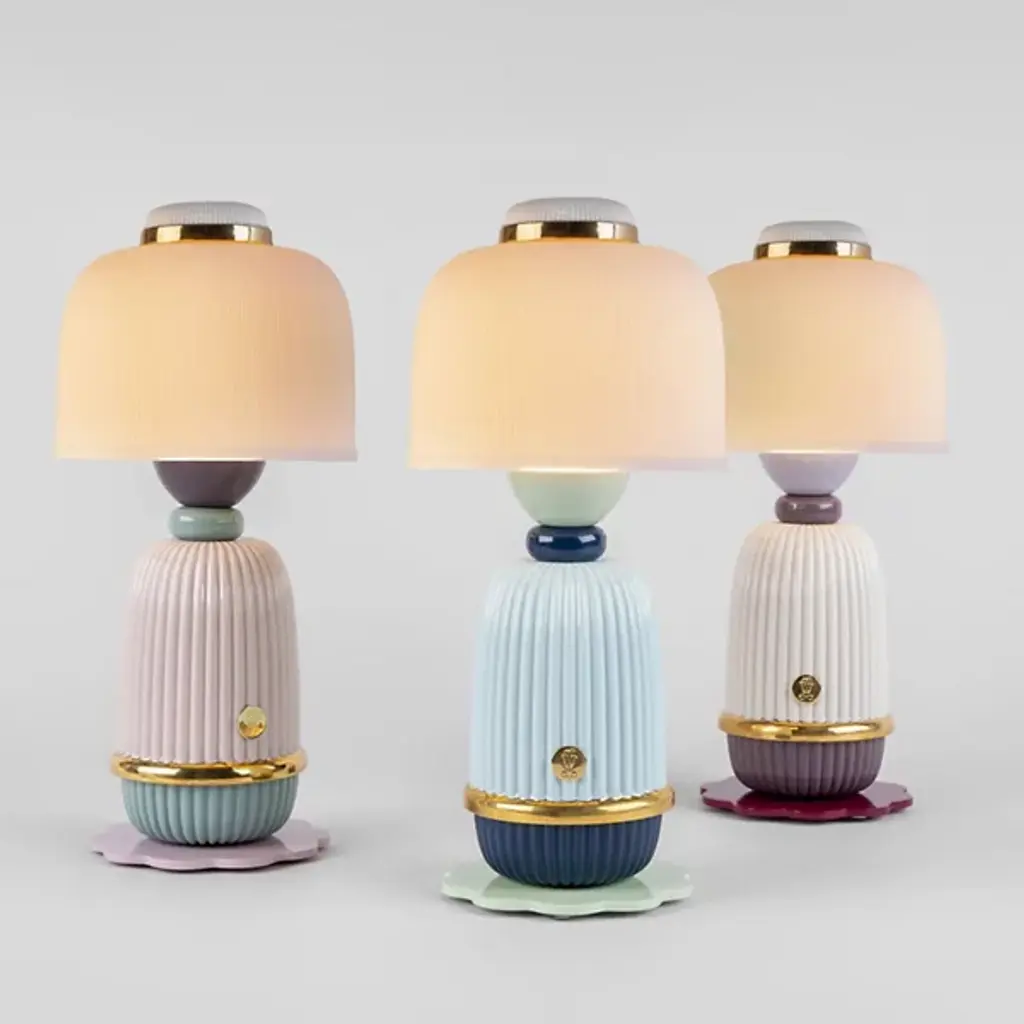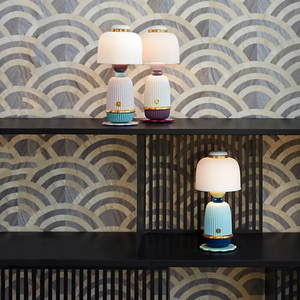 The Kokeshi LED Table Lamp from Lladro is designed by Robert Schnyder. It brings a transitional sense of style to your living space. Kokeshi takes its stylistic inspiration from dolls found in the Tohoku region of Japan. Your table lamp features a rounded motif and boasts a ribbed appearance that draws your eye. This fixture is composed of exquisite porcelain and metal, bringing refinement to your décor. The crowning shade nicely tempers the integrated LED light. Conveniently recharge the table lamp’s battery via micro USB-5V.