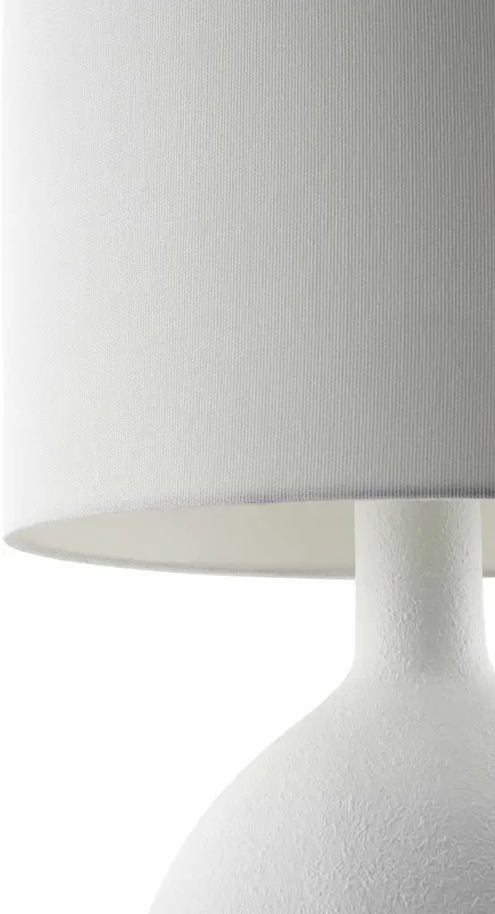 Collection: Kolomyagi Colors: White, Metallic - Brass, Translucent Material: Body: Ceramic / Shade (Outside): Linen / Shade (Inside): Polyester / Finial: Iron Styles: Traditional Made In: China Lighting Type: Accent Table Lighting Shade Material: Linen, Polyester Shade Color: White Cord Length: 6' Switch Type: On/Off Number of Bulbs: 1 Socket Type: E-26 Bulb Wattage: 100W