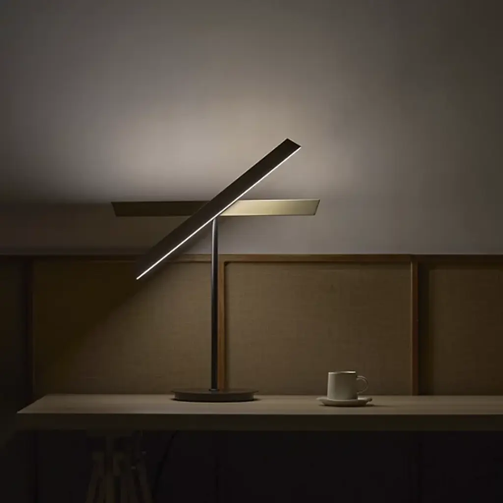 The Konnect LED Table Lamp from Seed Design brings a modern architectural aesthetic to your lighting. Designed by Huan-Rou Chang and featuring two panel-based LEDs that rotate up to 300 degrees, it allows for dynamic light distribution and creative arrangements to suit your mood and style. The integrated touch controls provide seamless dimming and on/off functionality, making it effortless to customize your lighting. This angular lamp is made from durable steel and polycarbonate, versatile and distinctive, and blends fabulous functionality with artistic flair.