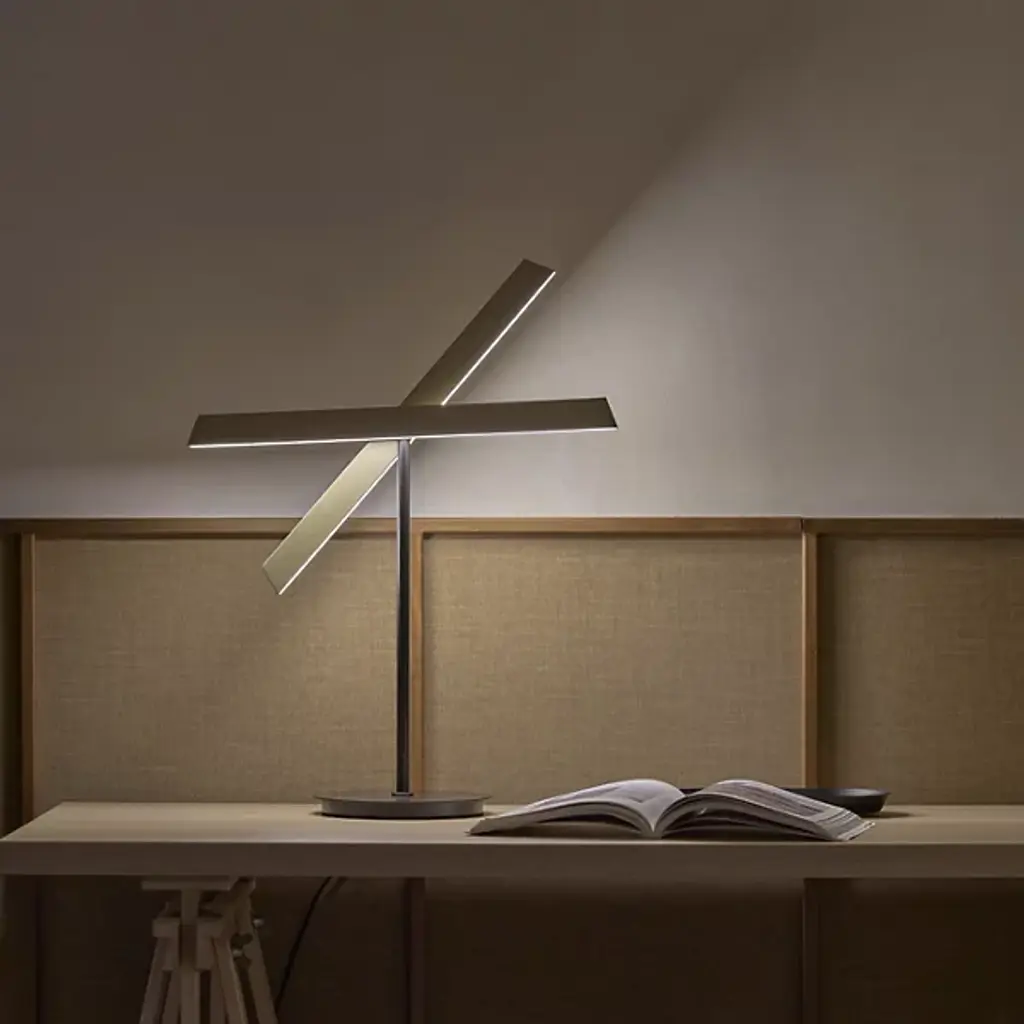 The Konnect LED Table Lamp from Seed Design brings a modern architectural aesthetic to your lighting. Designed by Huan-Rou Chang and featuring two panel-based LEDs that rotate up to 300 degrees, it allows for dynamic light distribution and creative arrangements to suit your mood and style. The integrated touch controls provide seamless dimming and on/off functionality, making it effortless to customize your lighting. This angular lamp is made from durable steel and polycarbonate, versatile and distinctive, and blends fabulous functionality with artistic flair.