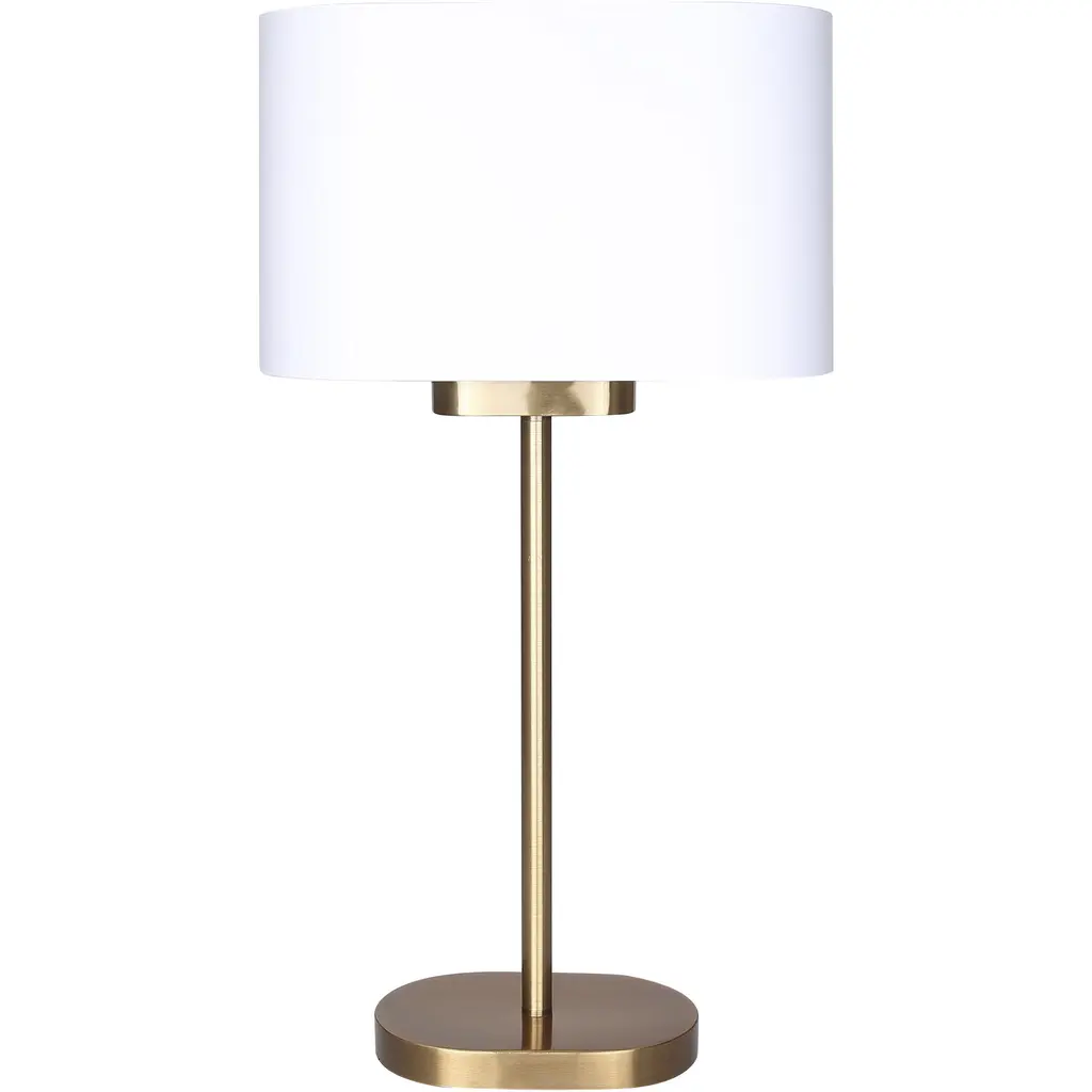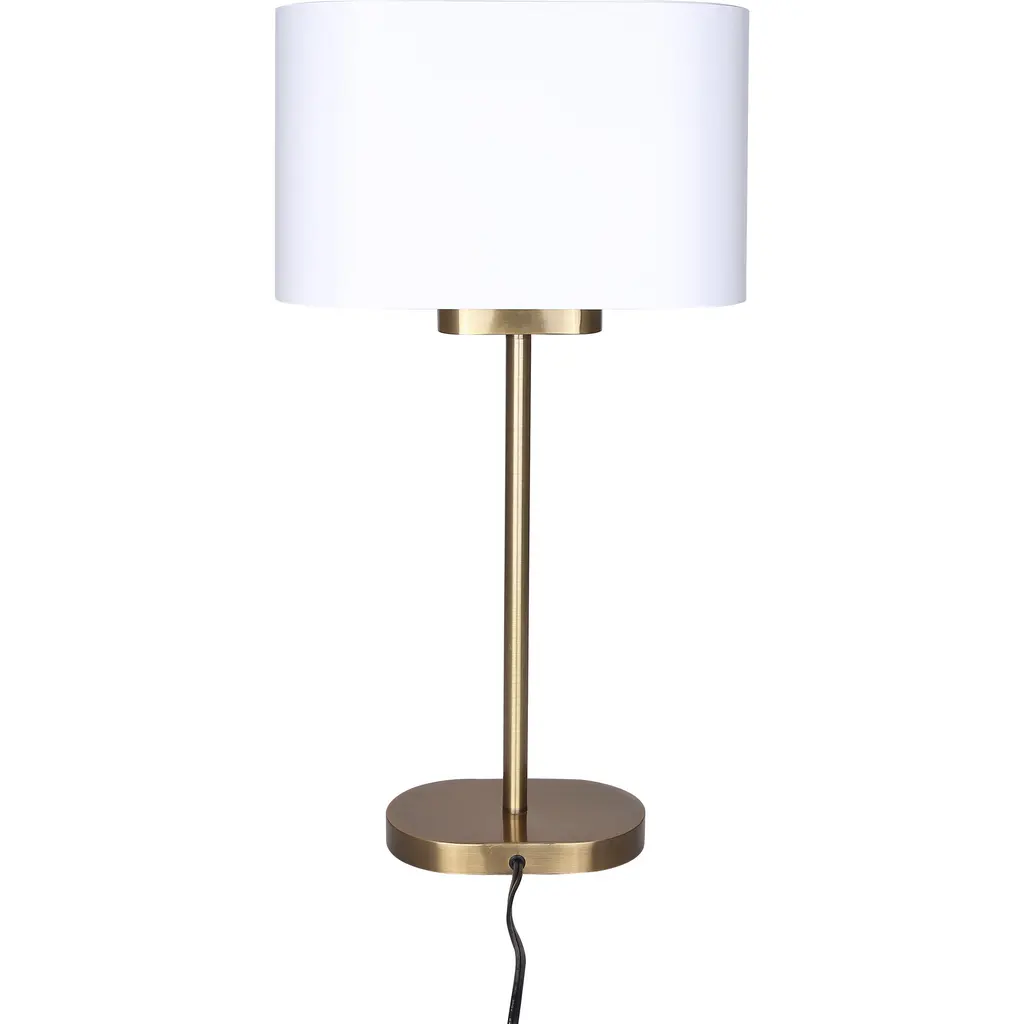 Illuminate your space with elegance using our oval-shaped table lamp in a stunning gold finish. Featuring a sleek matte white metal shade, this 1 Lt table lamp offers an exquisite touch to any decor. Perfectly sized at 13 inches wide, 24 inches high, and 6.25 inches deep, it's an ideal addition for accent lighting beside the bed, in a cozy reading nook, or to bring a touch of sophistication to your office. The 60W Type A bulb, convenient rotary switch, and clear cord ensure both style and functionality, making it the perfect lighting solution for any room.