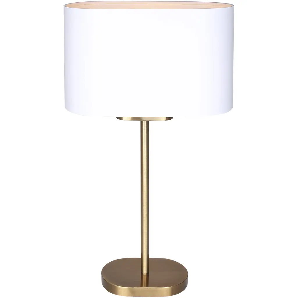 Illuminate your space with elegance using our oval-shaped table lamp in a stunning gold finish. Featuring a sleek matte white metal shade, this 1 Lt table lamp offers an exquisite touch to any decor. Perfectly sized at 13 inches wide, 24 inches high, and 6.25 inches deep, it's an ideal addition for accent lighting beside the bed, in a cozy reading nook, or to bring a touch of sophistication to your office. The 60W Type A bulb, convenient rotary switch, and clear cord ensure both style and functionality, making it the perfect lighting solution for any room.