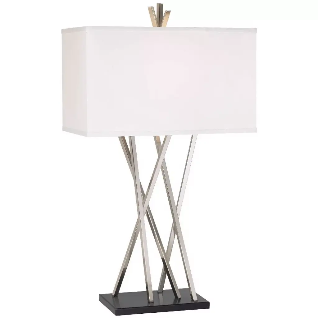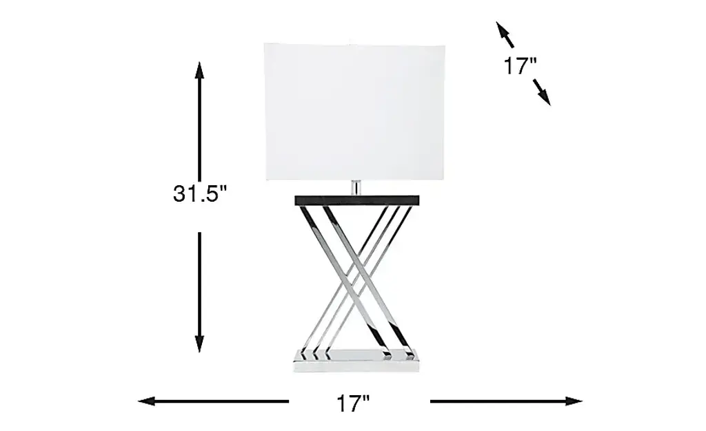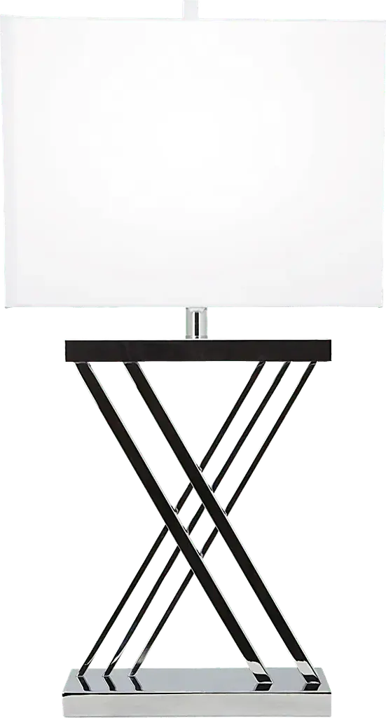Possessing a refined modern look, the Kriftel table lamp is a work of art. Its silver-finished base is designed with crossed pillars that form an X shape. The white drum shade suits any color scheme or decor style. Featuring a three-way switch, this lamp accommodates up to a 150-watt bulb (not included).