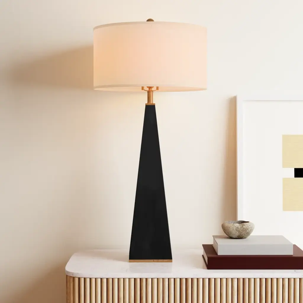 Illuminate your space in style with this standout table lamp. Crafted with a sleek finish and accented with gold leaf, it offers a hint of glamour. The switch is conveniently located on the socket, and the lamp provides ambient light that brightens up any room. It's topped off with a linen drum shade, adding a refined touch to its overall look. Plus, it's an easy way to add a dash of sophistication to your entryway or master suite.