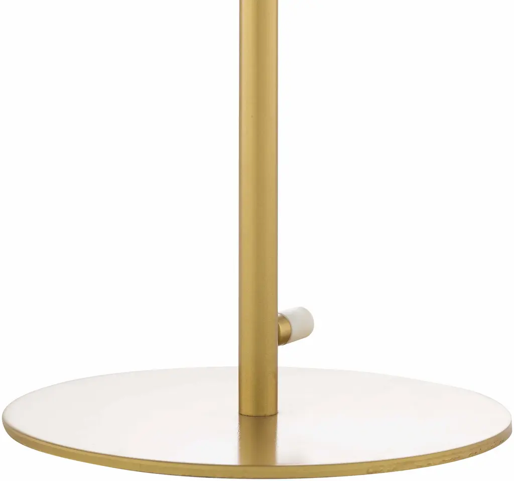 Collection: Krugersdorp Colors: White, Translucent, Gold Material: Body: Iron / Base: Iron / Shade (Outside): Glass Styles: Contemporary Made In: China Lighting Type: Accent Table Lighting Base: Iron Base Color: Gold Shade Material: Glass Shade Color: White Cord Length: 6' Switch Type: On/Off Number of Bulbs: 2 Socket Type: E-12 Bulb Wattage: 25W