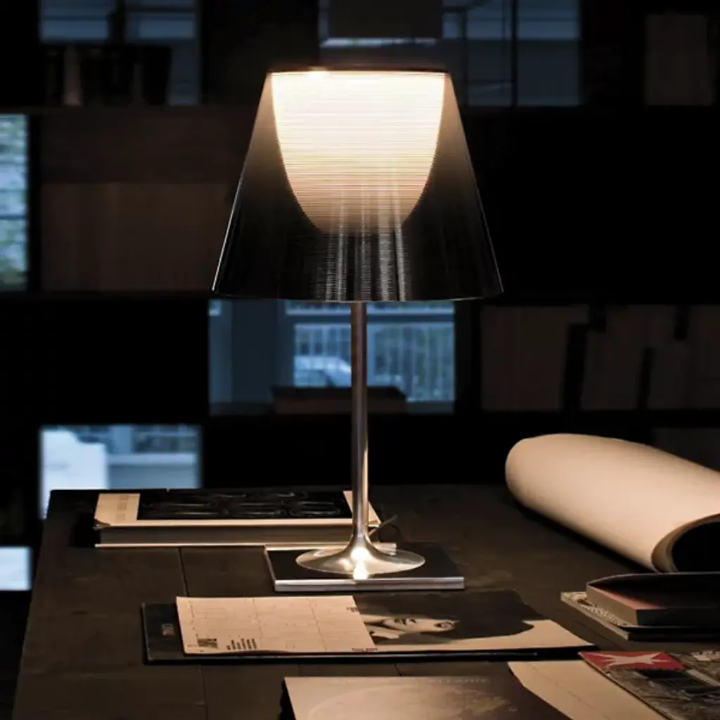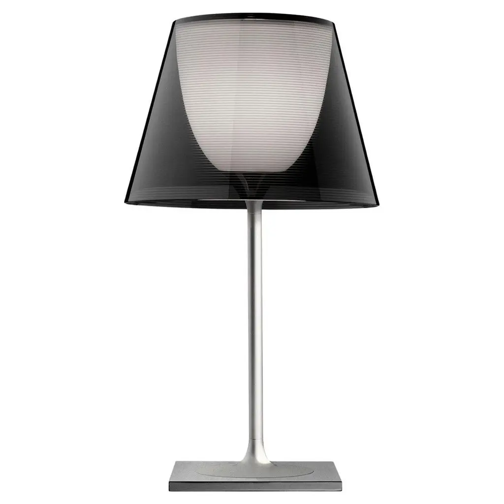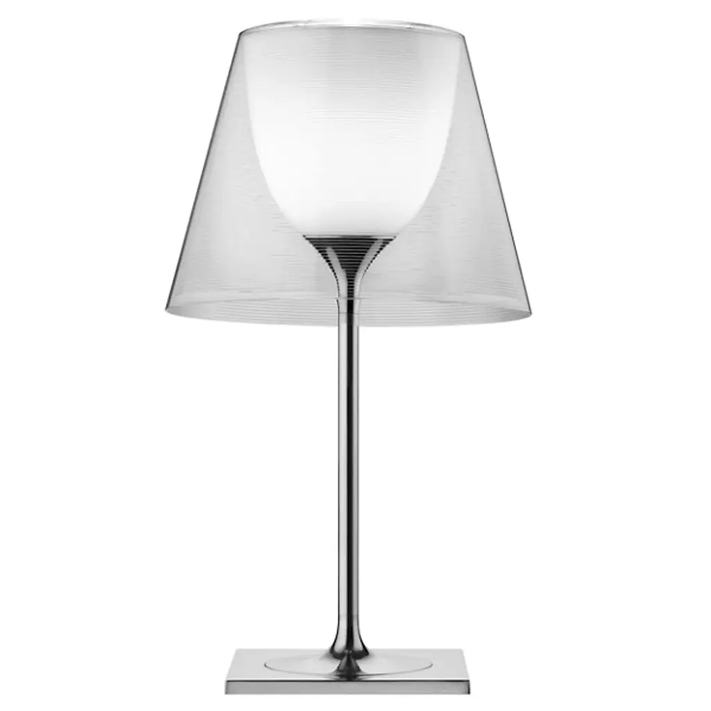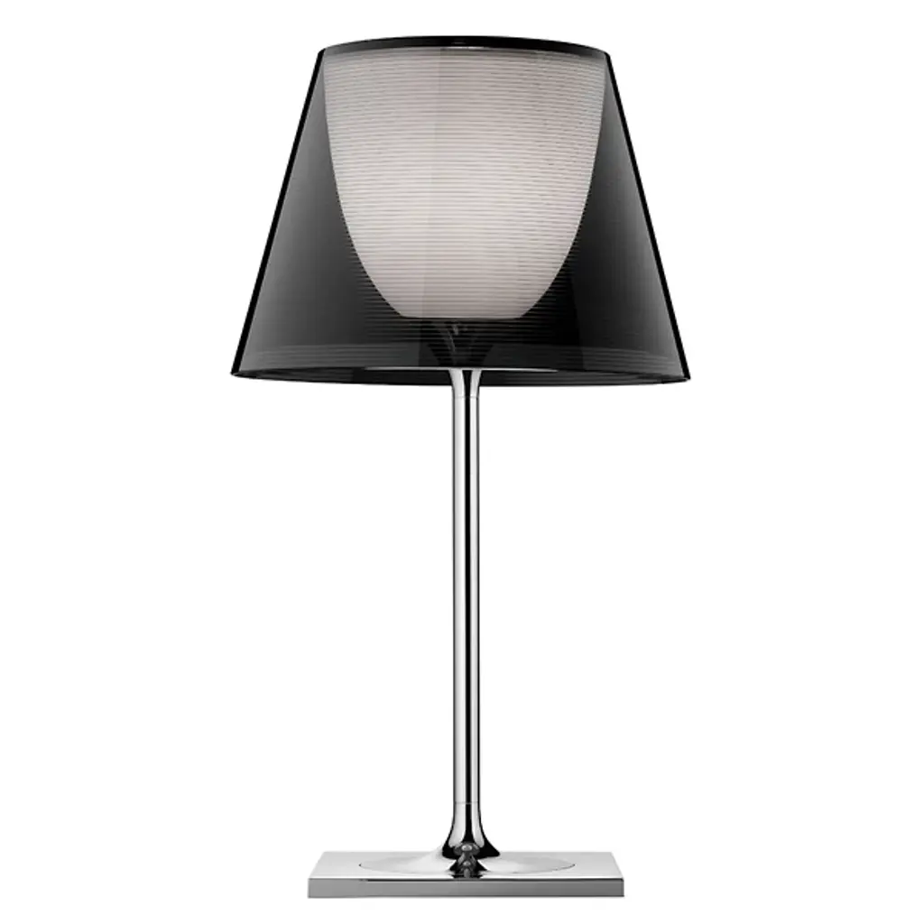 Following in the footsteps of the iconic Miss K, the Flos Ktribe T2 Table Lamp was designed by Philippe Starck with the same distinctive silhouette. Atop a clean, nylon-covered base, a flared PMMA or plisse cloth shade overlays a cup-shaped inner Opal polycarbonate diffuser.