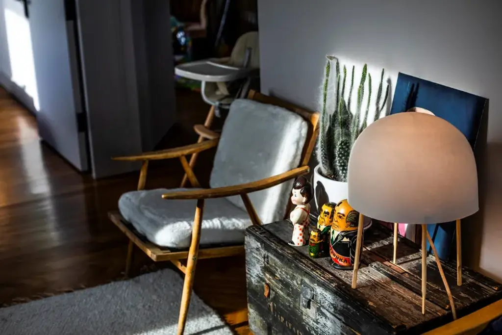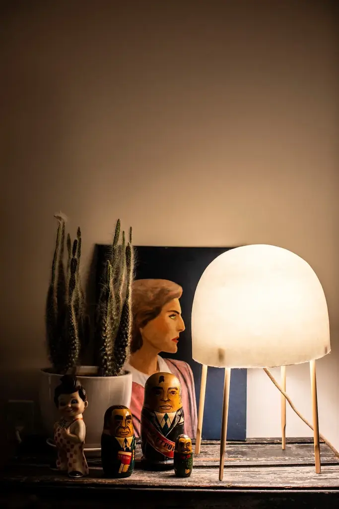 Kurage is a table lamp made of washi paper and ashwood.LIGHT SOURCE220 / 240 VLED retrofit, Fluo 20W E27No dimmableIP 20Bulb not includedWith its poetic spirit and fine workmanship, the lamp relies on 3D shaping of Japanese washi paper to filter light, creating a relaxing, warm atmosphere. The slender legs in ash wood, ceramic bulb housing and sheathed cable complete the design.