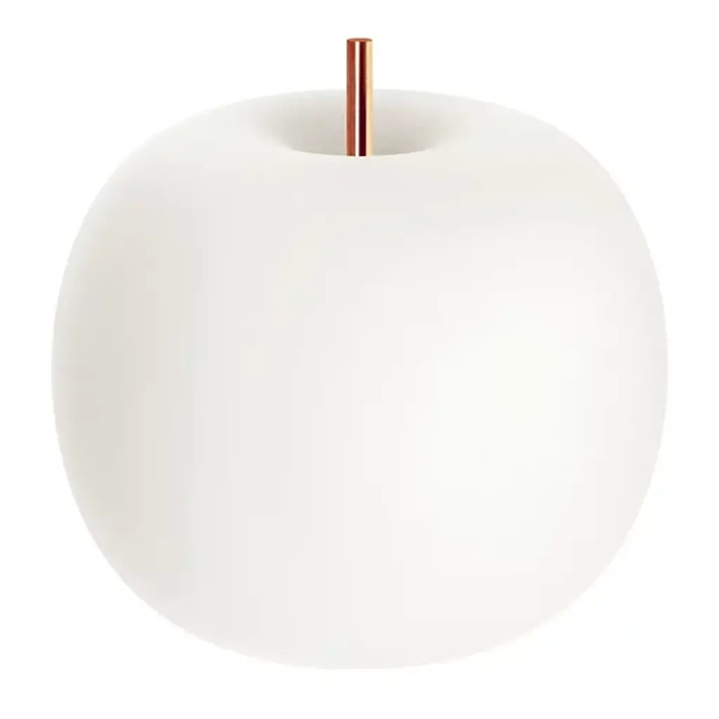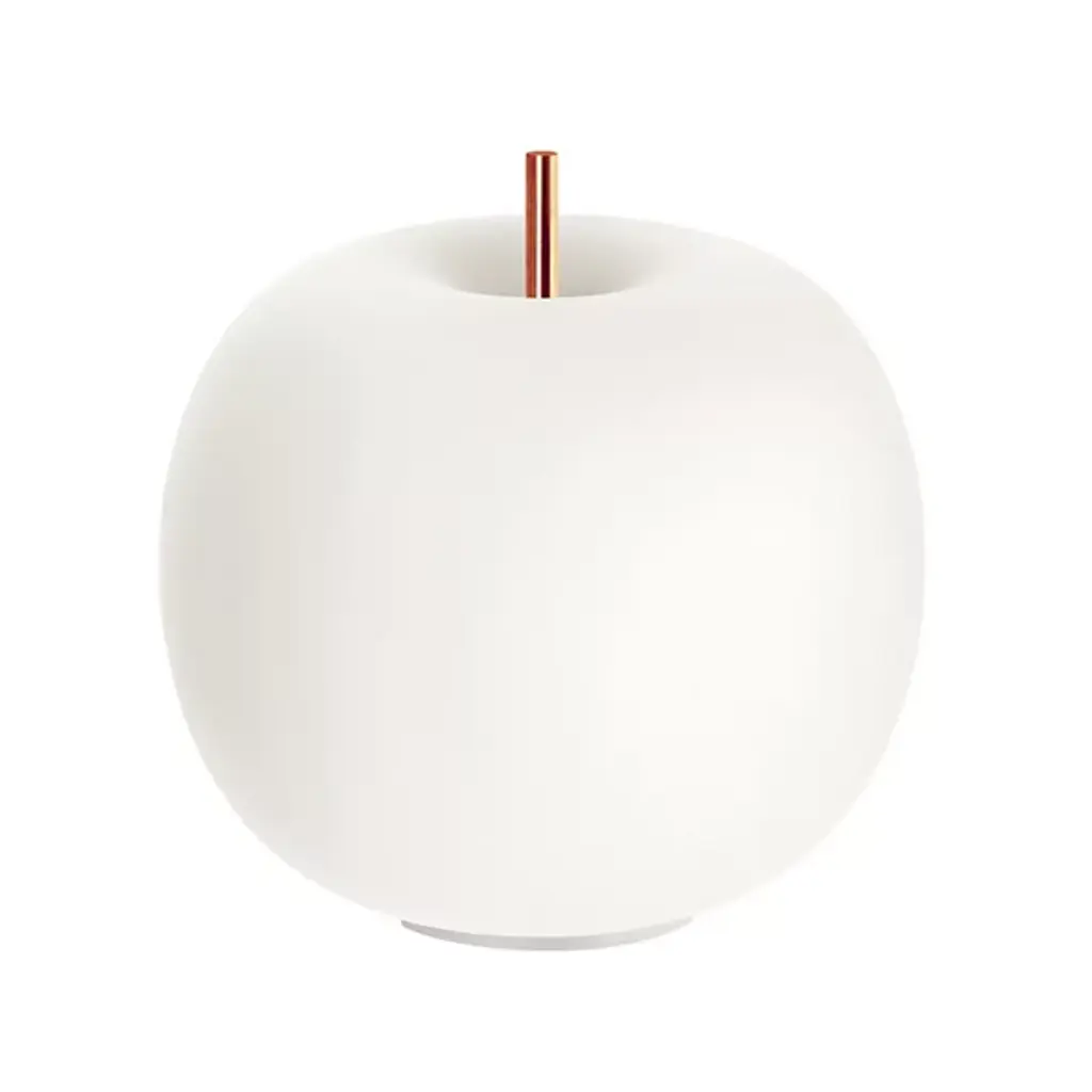 Enhance alcoves and small side tables alike with the Kushi LED Rechargeable Table Lamp from Kundalini. An appealing modern structure that seats strong LED lamping beneath a rounded opal glass shade, its form suggesting a stylized apple, with its upper surface curving inward, extending a short metal stem upward that also serves as the fixture’s handle. The lamping is robust, rechargeable with the use of an included cable, and can last for up to six hours, transmitting a soft layer of light that extends evenly across its surrounding environment.