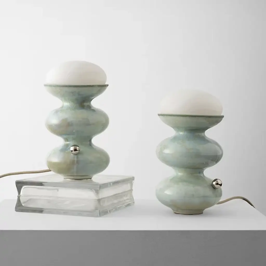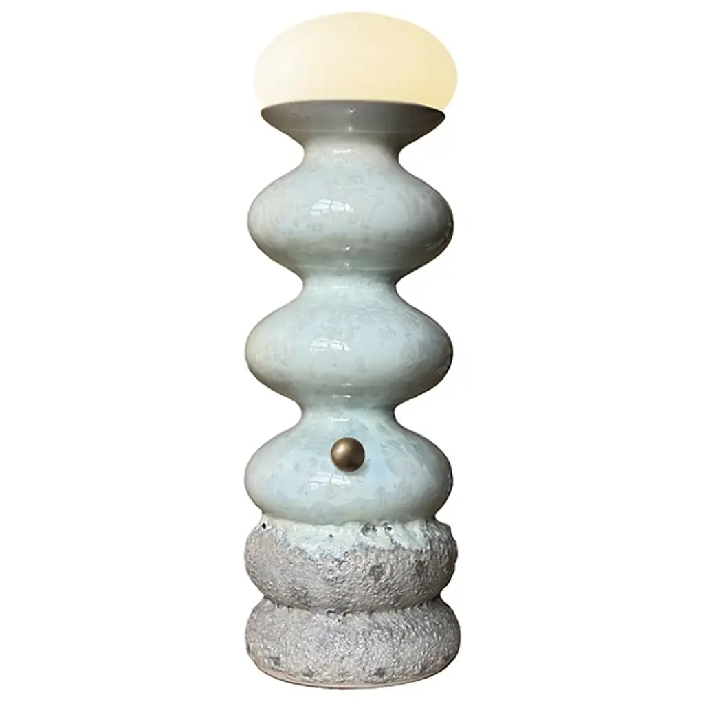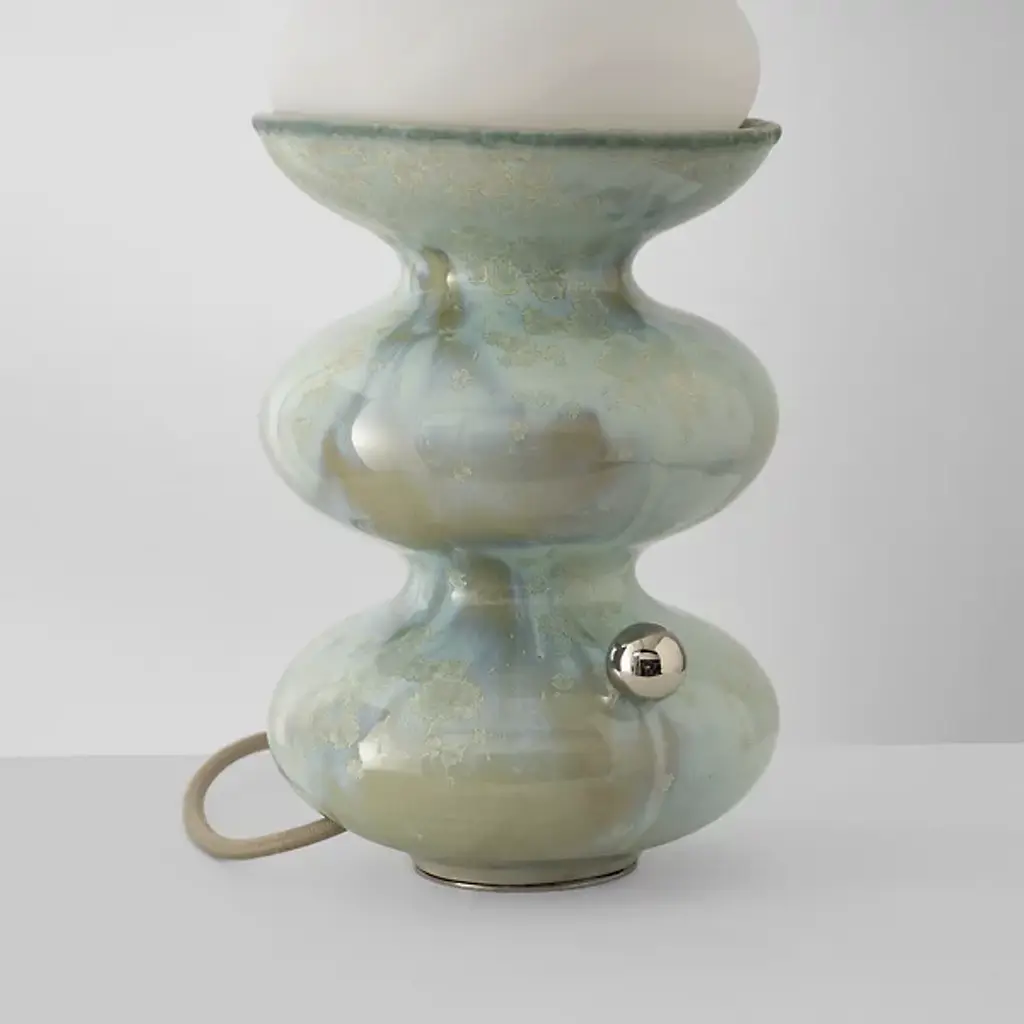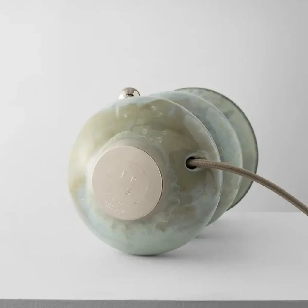 The Kuwait Table Lamp from Forma Rosa Studio blends timeless elegance with modern craftsmanship. Designed by Maria Castillo Irribarren and Santiago Braby Brown, it features a ceramic body carefully handcrafted by skilled artisans and finished with custom glazes for a unique, sophisticated look. While the ceramic base showcases global artistry, the refined metal accents are custom-made in Brooklyn, New York, for a perfect balance of tradition and precision. A fully dimmable 6-inch Tala Oval LED bulb, custom brass dimmer knob, and engraved FRS brass plate highlight its thoughtful details.