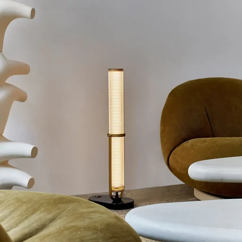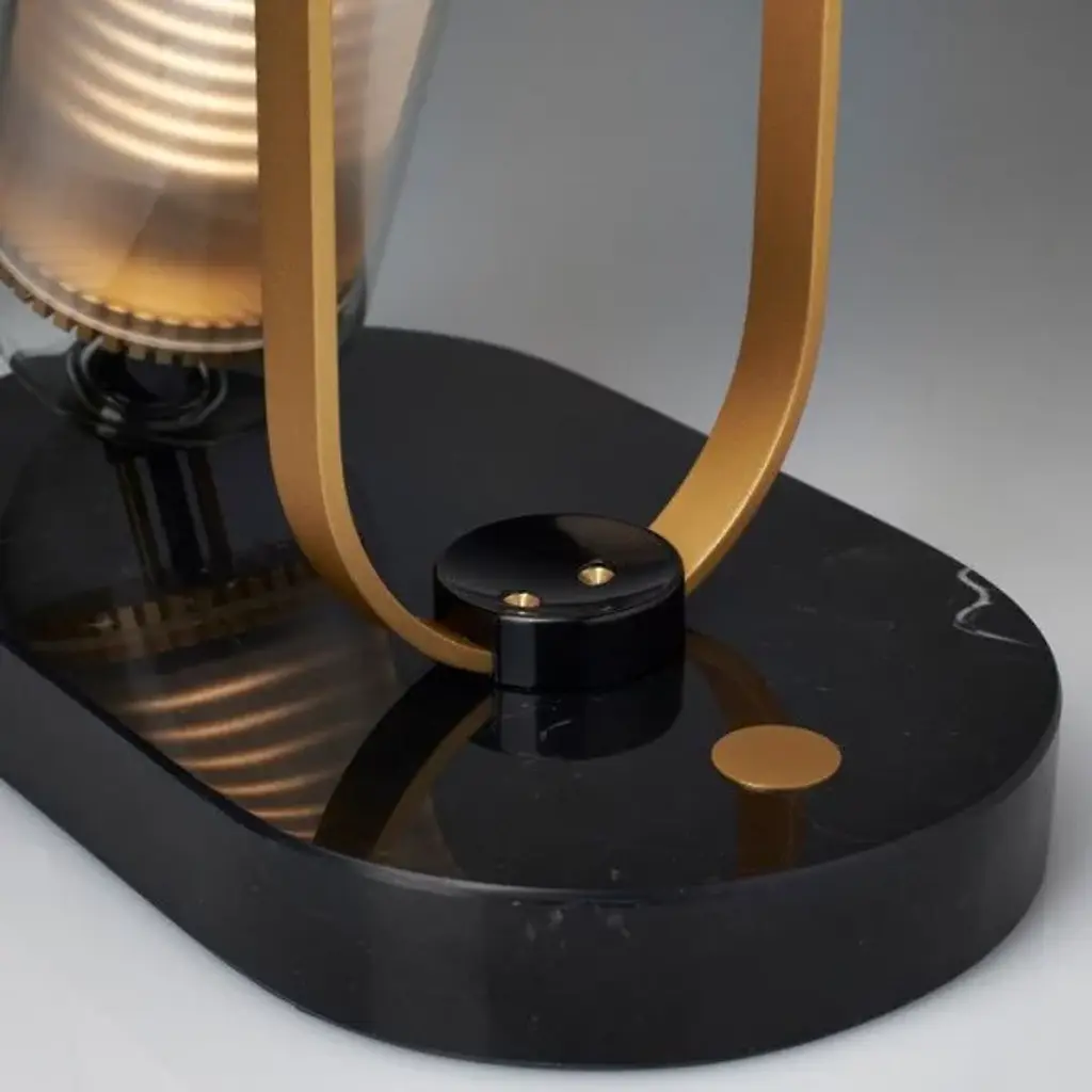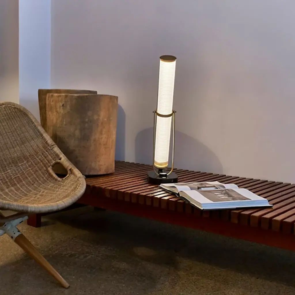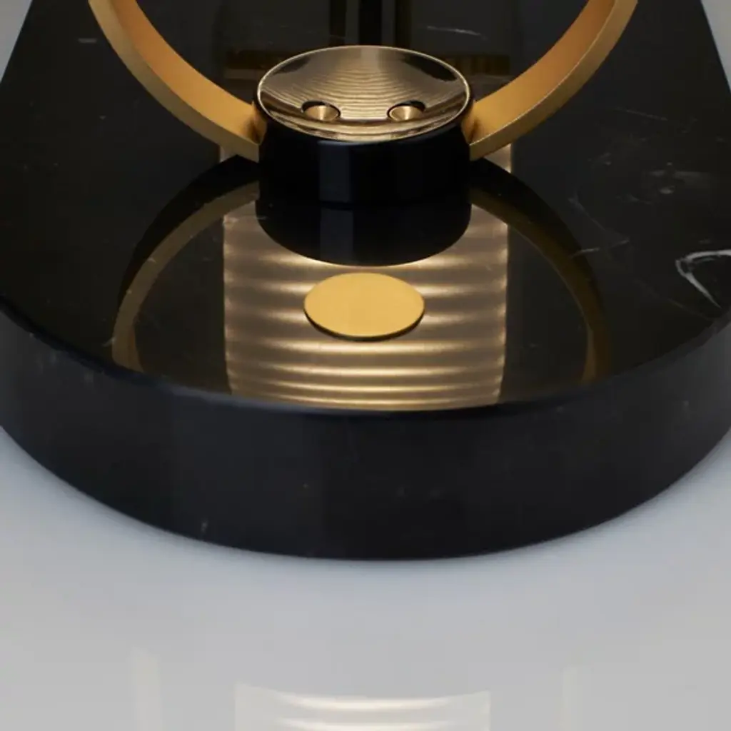 The mystery of the unknown inspires this part magic, part science design. Surprise yourself and surprise guests when you flip the switch on La Lampe Frechin LED Table Lamp from DCW Editions. Designer Jean-Louis Frenchin approaches the piece with a poetic view of technology. Frenchin designed the piece to reveal and hide its light. Like a slender beaker, the glass tube conceals the bulbs inside while displaying their energy with a golden, layered design. Looking at the warm tube of light conjures up the same sense of wonder as a magic trick or science experiment. Adding to its otherworldly properties, the tube gets energy from 2 positions on the elegant marble base. Held with a sleek metal frame, the tube stands straight or at an angle in a handsome silhouette. Tap on the low-profile dimmer on the base for a tailored mood.
