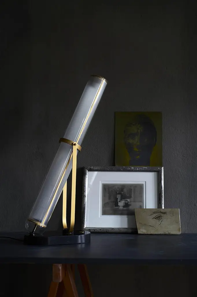 La Lampe Frechin table lamp by Jean-Louis FrechinDimensions: D 25 x W 15 x H 65 cmMaterials: Borosilicate glass, marble, aluminumAll our lamps can be wired according to each country. If sold to the USA it will be wired for the USA for instance.Made of a marble and aluminum base, and a borosilicate glass tube. This lamp, by confronting timeless materials and a poetic approach to technology, illuminates spaces and offers a sensitive experience of optics.Jean Louis Frechin is the founder of NoDesign. net, author and an award winning global design and innovation agency where he worked on innovative and humanism design for some different kind of organisation and companies.Before that, he worked at Montparnasse Multimédia as digital products editor and creative director. In this capacity, he conceived and created more than fifteen cultural and educational CD ROMs with a comprehensive and specifically design approach.Today, Jean-Louis Frechin is currently an awarded and recognized expert, doer and thinker in product and digital design, interaction and interfaces with the general public. For him, design is a state, a prism for understanding and questioning the world. New challenges, new territories, attempting to enlarge the "scope of what is possible’" and ‘"desirable’" without losing the basic values of design; meaning, simplicity, emotion, and above all human endeavour.