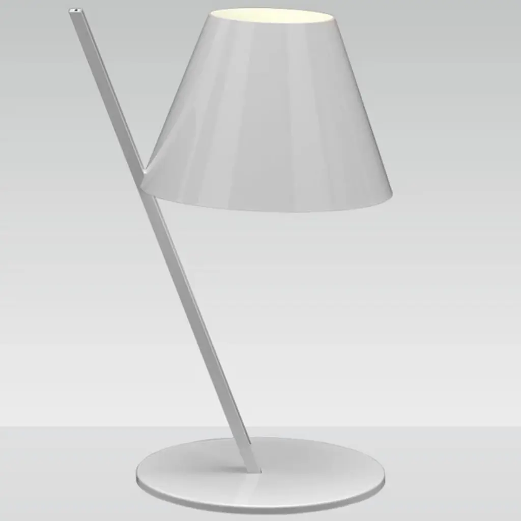 Leaning in a relaxed position, the Artemide La Petite Table Lamp is a sweet little design with a comforting source of light. The small plastic lampshade balances freely against the angled stem, allowing light to shine up through the diffuser as well as below. The stem and shade match, with the exception of the Red and White version.