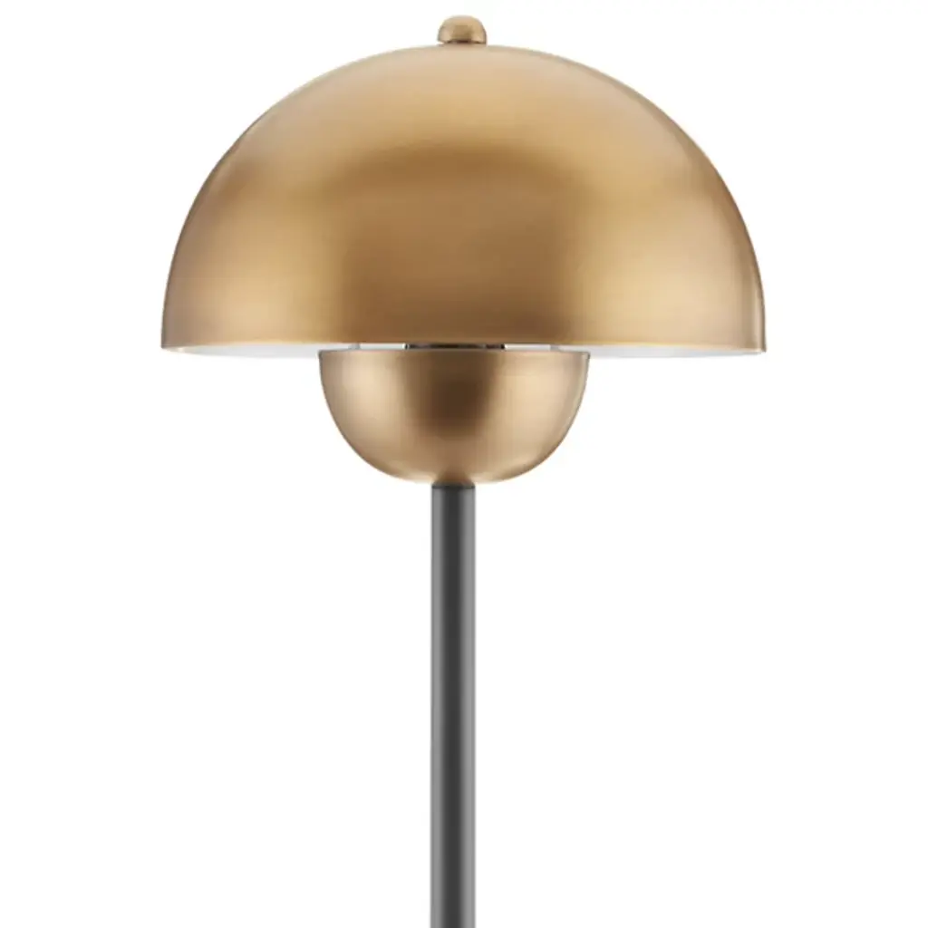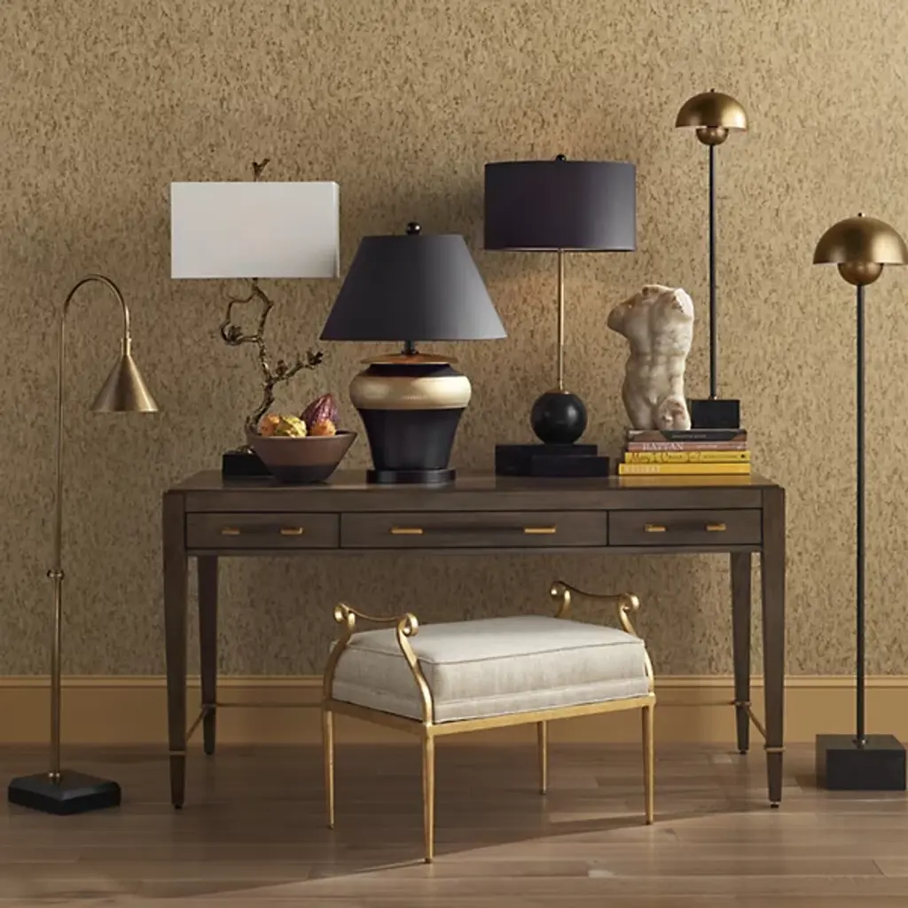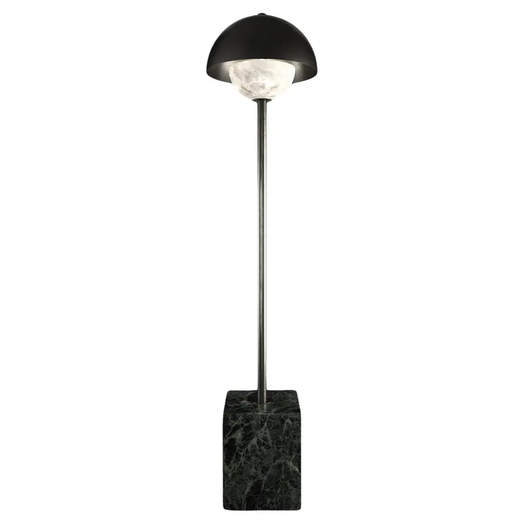The La Rue Table Lamp by Currey & Company brings an elevated mix of materials together for a sleek, minimalistic look. Designed by Ian Thorton, a chunky marble cube anchors this design, supporting a slender stem that reaches up to hold two smooth, dome-shaped shades that are artfully paired together to provide a lovely layer of indirect light to surroundings. A beautiful brushed finish and small finial add the finishing touches to this handsome design.