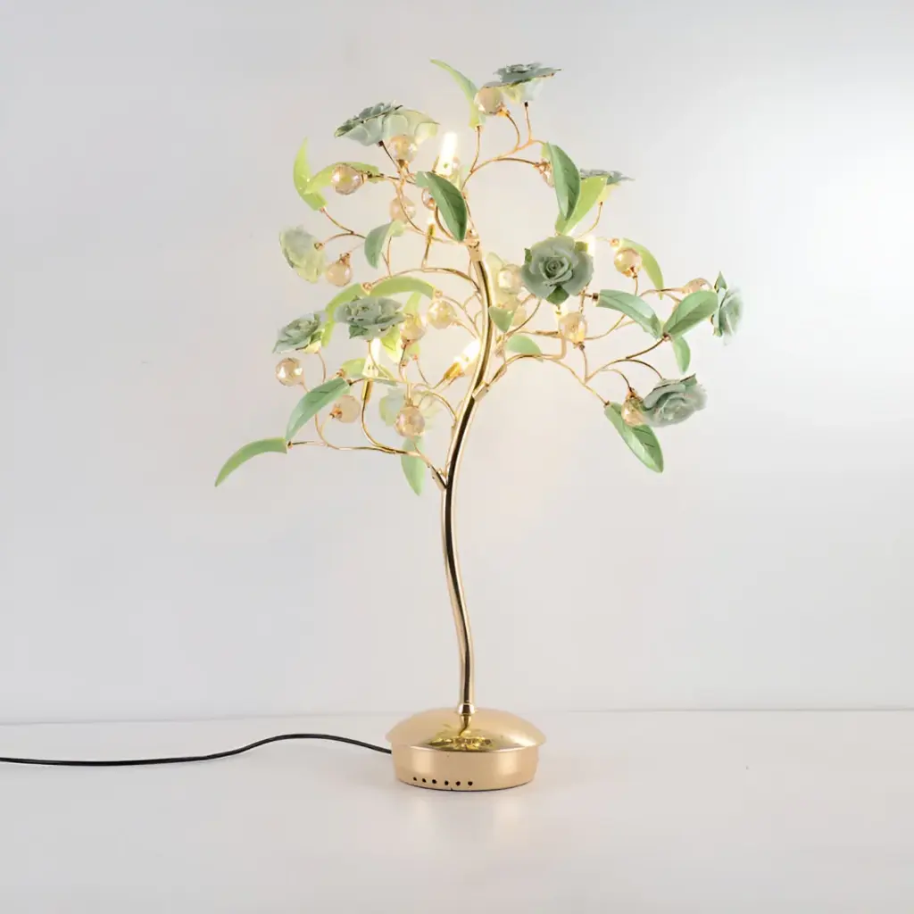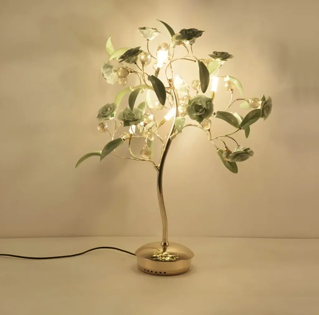 This table lamp is a stunning piece that combines elegance and creativity. It features intricate ceramic roses and sparkling crystals that add a touch of glamour to any room. The LED light provides a soft and warm glow, perfect for creating a cozy atmosphere. The tree-shaped design adds a unique and modern twist to the traditional table lamp, making it a standout piece in any decor. This lamp is not only a source of light but also a beautiful decoration that will enhance the aesthetic of your space. Add a touch of sophistication to your home with this exquisite table lamp.Product parameters:Material: Iron, K9 Crystal, Ceramic rosesSize: Dia53xH80cm / Dia20.9xH31.5''''Light source: G9 LED bulbsColor Temperature: Warm light 3000KColor: Green, RedVoltage: AC110 - 240VWattage: Non-DimmableIs Bulbs Included: YesUL Certified: YesApplication: Living Room, Bedroom, Dressing Room, FoyerReminder! Save products as favorites and put them in your shopping cart so as not to lose them.Our advantagesTop-qualityUnique productsPerfect balance of price-quality-warranty24/7 customer serviceConstant updating of the assortmentFree Express delivery, easy returnsMIRODEMI is the premier retailer of luxury products for home decor and renovation, which will ensure the uniqueness of any interior by providing a combination of stylish shape and innovative technology. We will be glad to cooperate with Interior Designers, Builders, Architects in the field of realizing the exclusive fabulous projects.Go to our store page to see all the latest collections of lighting, furniture and home decor for any budget and space of your sweet home: kitchen, dining room, living room, bedroom, bathroom, staircase, loft, hall, foyer. Become a follower not to miss new items and don''t forget to save your favorite products in order not to lose them. Happy shopping with MIRODEMI!