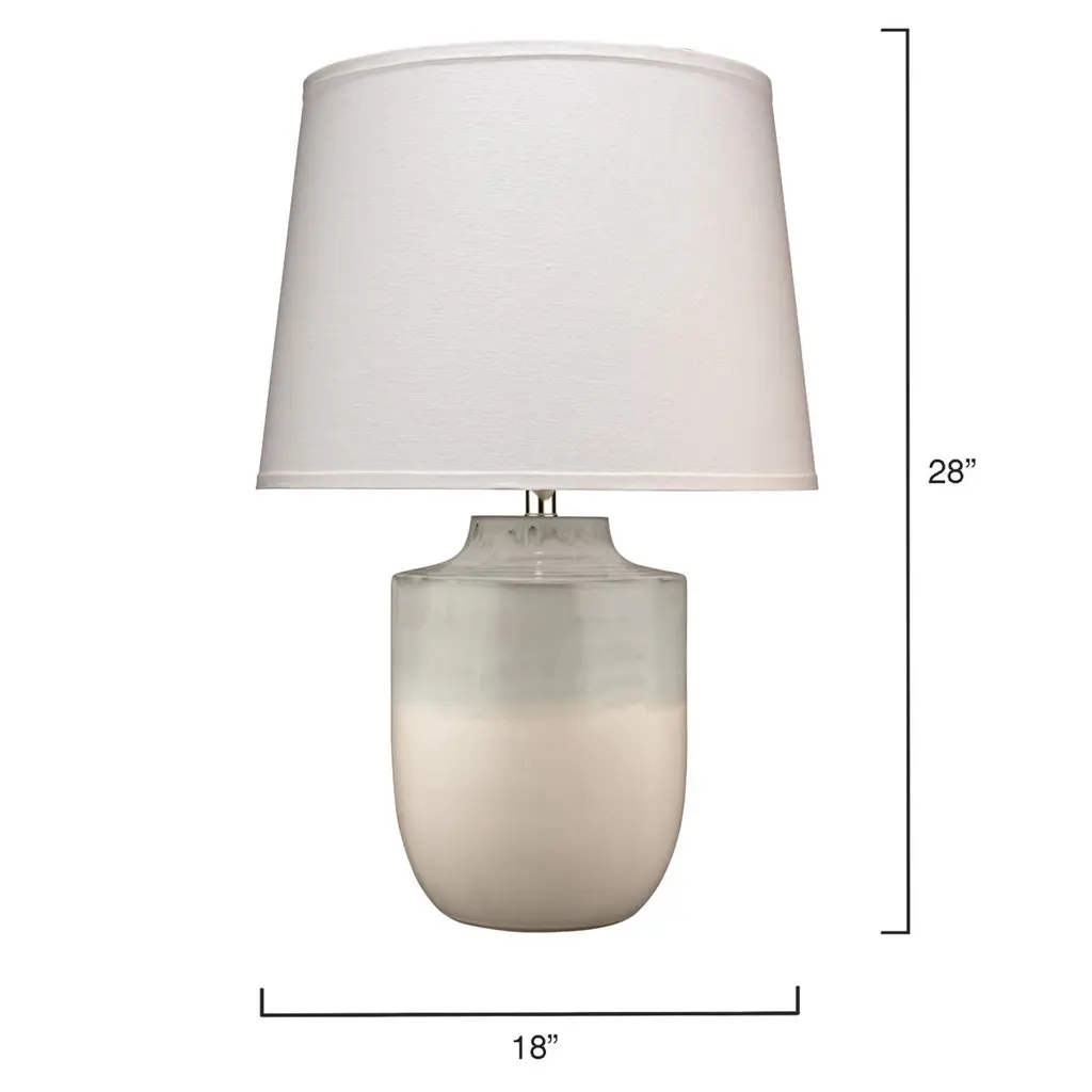 Perfect for the coastal home, this table lamp is crafted of ceramic with a soft ombré-style glaze in blue-green and cream. A white linen shade completes the design. Due to the handmade nature of this piece, variations in color, tone, and pattern may occur.