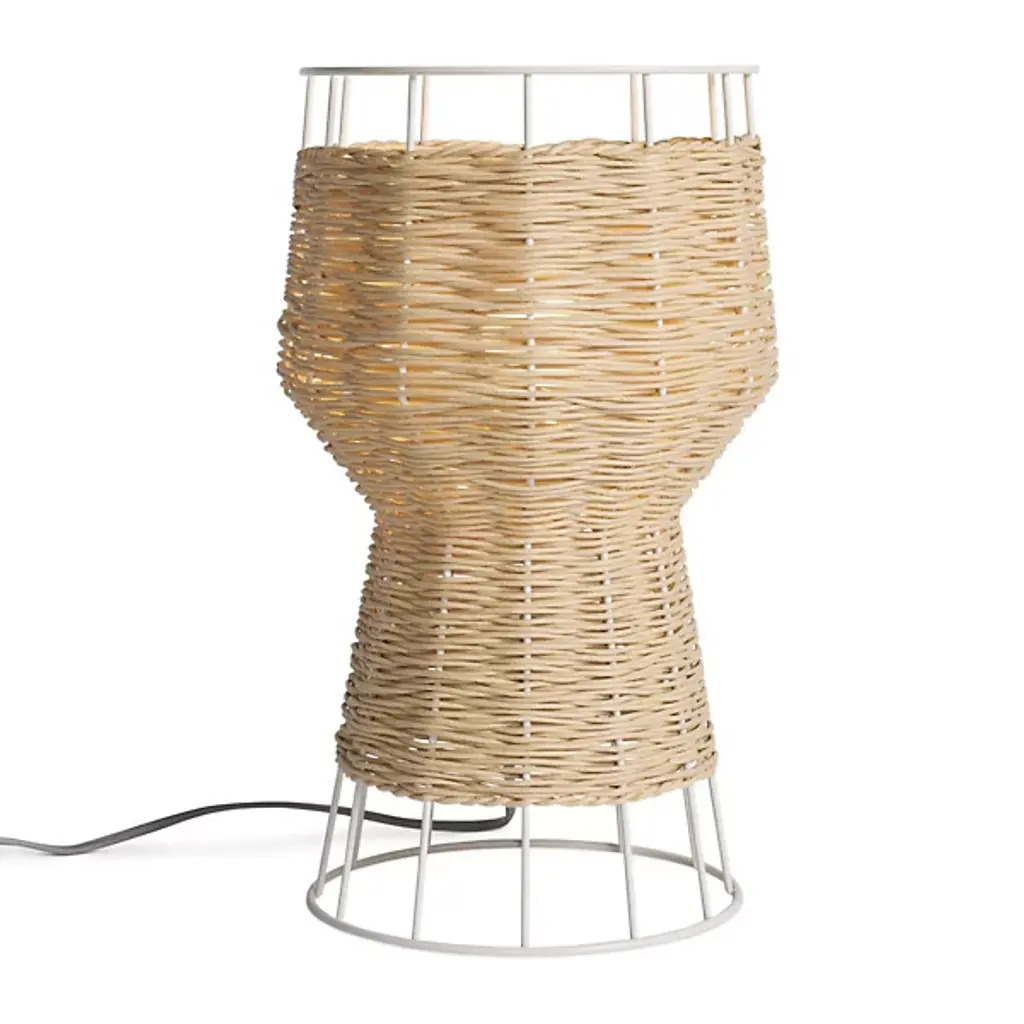 Who needs a meditation app? Natural rattan adds earthy appeal to a graceful, architectural steel form. Emits a satisfying warm glow and soothing patterns of light.