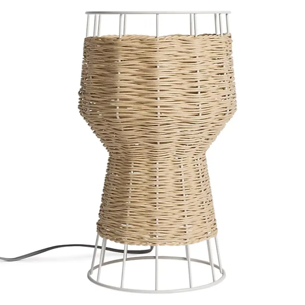 Add a meditative appeal to interiors with the Laika Table Lamp from Blu Dot. Sure to provide a centering appeal, it fuses natural rattan with graceful architectural steel. Organic cylindrical rattan forms a tactile nest around a sturdy metal framework, setting strong lamping inside. The coastal contrast combines memorable structural style and satisfyingly soothing light. As illumination interacts with the rounded rattan shade, it emits unique patterns of ambient glow, whether assisting your reach or displaying decor with a mix of natural and abstract elements.