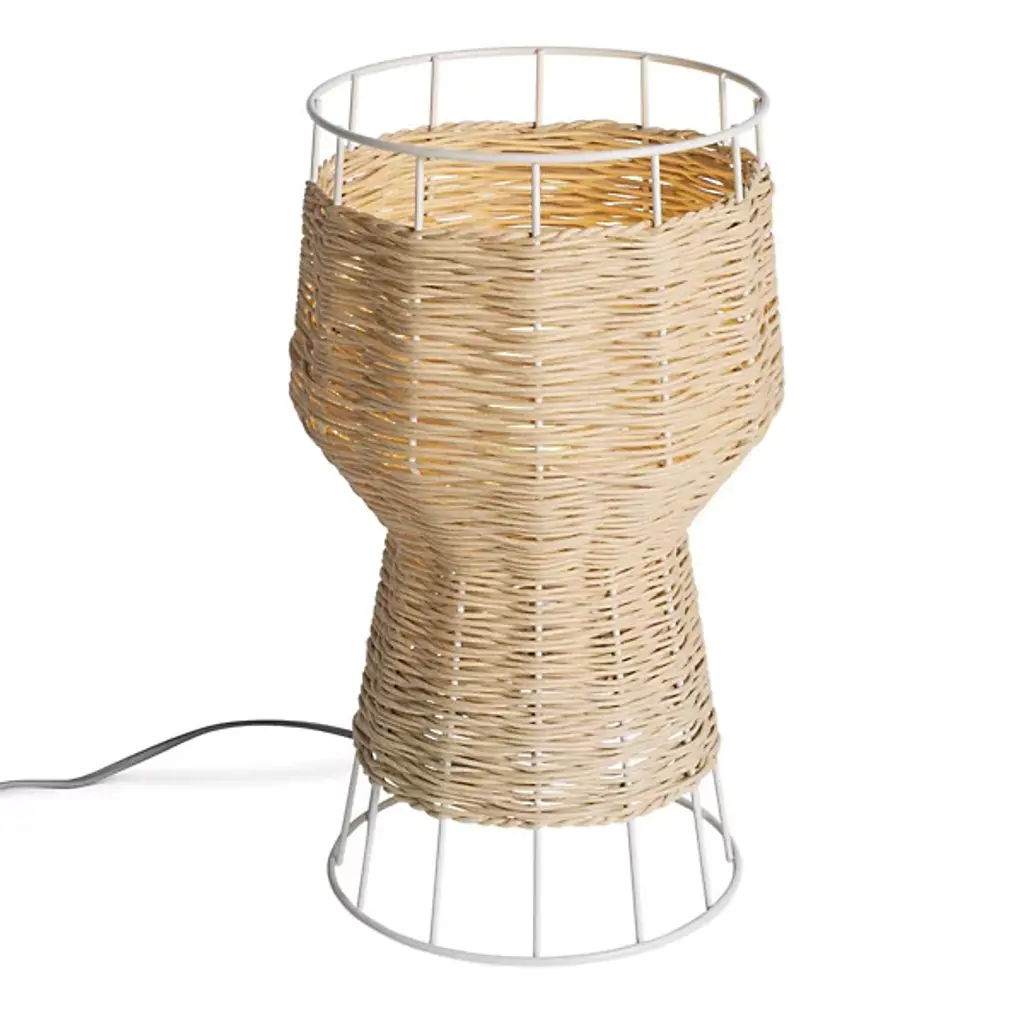 Add a meditative appeal to interiors with the Laika Table Lamp from Blu Dot. Sure to provide a centering appeal, it fuses natural rattan with graceful architectural steel. Organic cylindrical rattan forms a tactile nest around a sturdy metal framework, setting strong lamping inside. The coastal contrast combines memorable structural style and satisfyingly soothing light. As illumination interacts with the rounded rattan shade, it emits unique patterns of ambient glow, whether assisting your reach or displaying decor with a mix of natural and abstract elements.