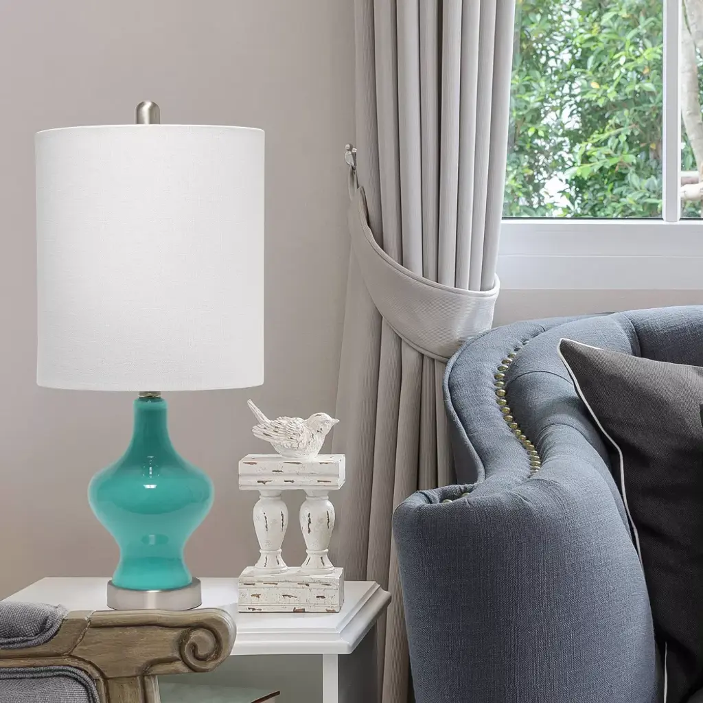 Simple and elegant, this 22.5" lamp is sure to make a tasteful update to any room in your home. This lamp features a beautifully shaped mercury glass base that is complimented by a white fabric drum shade. You will rejuvenate your living room, bedroom, foyer or office with this trendy lamp!