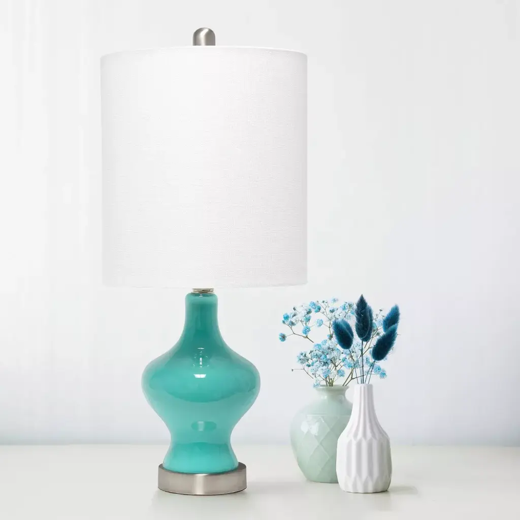 Lalia Home Paseo Mercury Table Lamp With Fabric Shade Silver : Modern Glass Base, Linen Drum Shade, Ul Listed, No Assembly Required