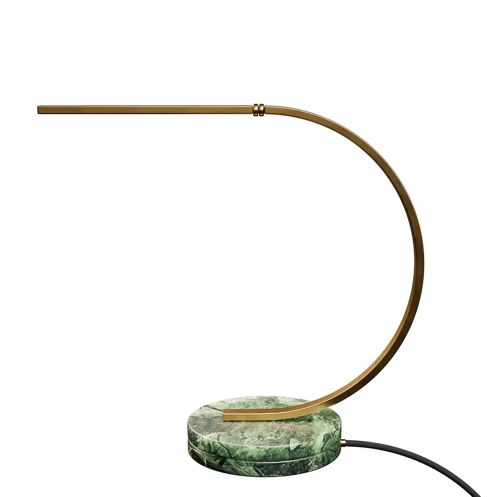 Distinguished by the refined interplay of brass and Guatemala green marble, this exquisite table lamp, designed by Hebanon Studio, embodies a masterful simplicity that captivates the eye. Evoking the elegance of a precise blade of light cutting through darkness, its design breathes life into any space, casting a natural and comfortable glow. With its delicate yet penetrating presence, this lamp brings a touch of sophistication to every environment it graces.