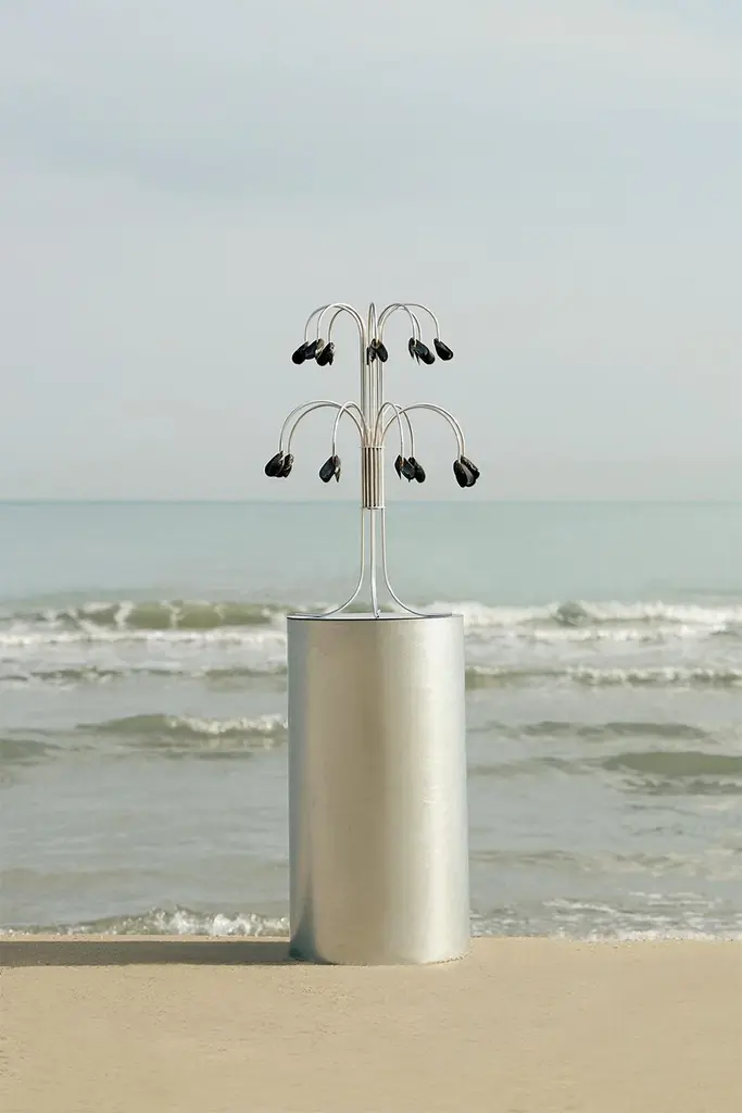 Lamp With The Shells in Metal & Aluminum by Touch With EyesDimensions: D 52 x W 52 x H 73 cmMaterials: Metal and aluminum. Weight: 1 kg. All our lamps can be wired according to each country. If sold to the USA it will be wired for the USA for instance. Please contact us.TOUCH WITH EYES is a duo of designers Alexander Kanygin and Anna Druzhinina.Alexander is an independent product designer who established his own studio in 2004. Anna is a fashion designer, founder of a local brand M_U_R. Both designers participated in various international exhibitions, their works having been published in such magazines as: Wallpaper ELLE Decoration, Sight Unseen, Moskauer Deutsche Zeitung, Bellissima Kids, Mind Mag, Bigu Migu, AD Magazine.By the will of fate, Alexander and Anna found themselves in new conditions and in a new place, which prompted them to form a creative union. Currently, the designers are working in Europe.Moving around Europe in the car in which they set up their workshop, the guys were able to work "on the fly" in fields and on beaches, in parking lots and in the mountains. The surrounding world with its nature and traces of human life, which are invariably found even in the most desolate corners of Europe, became the main source of inspiration and the basis for work. That is how the idea of taking materials for their projects from the environment sprang up: trees and stumps discarded by the sea, shells on beaches and buoys from fishing nets.All these “treasures” were given a new life, new shape and new function, and the audience got the opportunity to feel the sea and the sun, salt and sand, stones and earth.