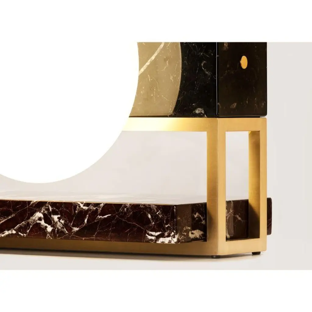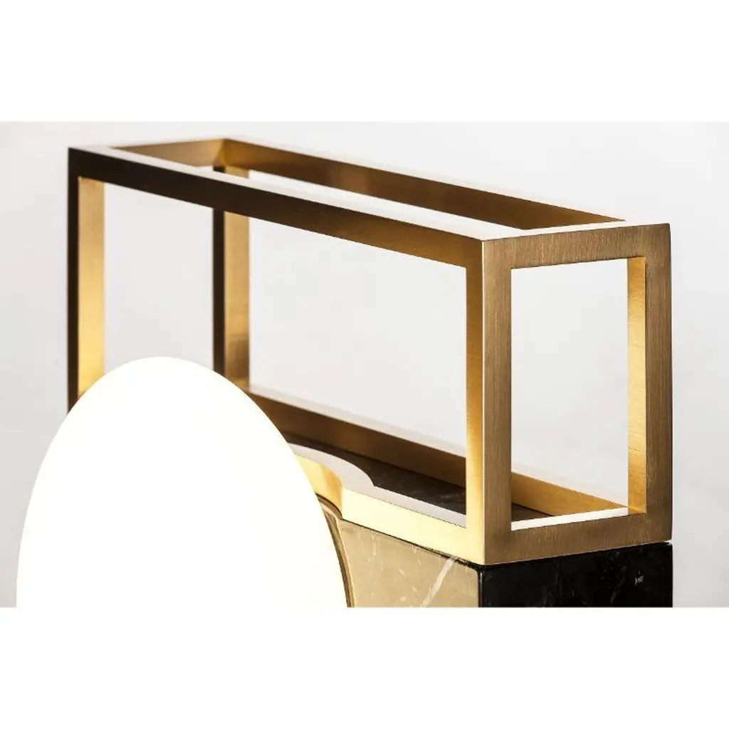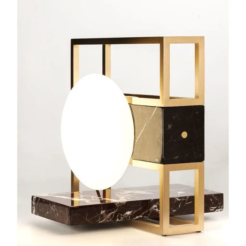 Lampada 14, table lamp by Hagit Pincovici (hand blown glass)Dimensions: W41 x D19.5 x H41 cmMaterials: brass, hand-blown glass, LEDAll our lamps can be wired according to each country. If sold to the USA it will be wired for the USA for instance.Also available: Lampada 12, 13, 15, and 18.The light sculptures of Hagit Pincovici embrace the natural variance and craftsmanship in her process and her materials, resulting in each piece being slightly different from the others. She works volumetrically, creating compositions with her signature and unique vision. The design philosophy of LAMPADA 13 is to preserve the inherent qualities of the given material and combine marble and polished and opaque Brass.Hagit Pincovici founded her eponymous bespoke luxury furniture and lighting atelier in 2014. Known in her earlier work for a rich color and material palette, and a devotion to the geometric forms found in modern art, Hagit has established her practice as one of the foremost among her generation of designers. Since 2019, Hagit has turned her attention to nature, inspired by the botanical forms and striking landscape of her native Israel. Materiality has always played a strong role, from an initial focus on marble, brass, and lacquer to more recent exploration of sandstone and cast aluminum. Her signature clean lines balance out these ‘softer’ materials, highlighting the relationship between the experimental and functional found throughout her oeuvre. For each handmade piece, Hagit collaborates personally and directly with a family of artisans in the heart of the furniture district of Brianza, outside Milan.