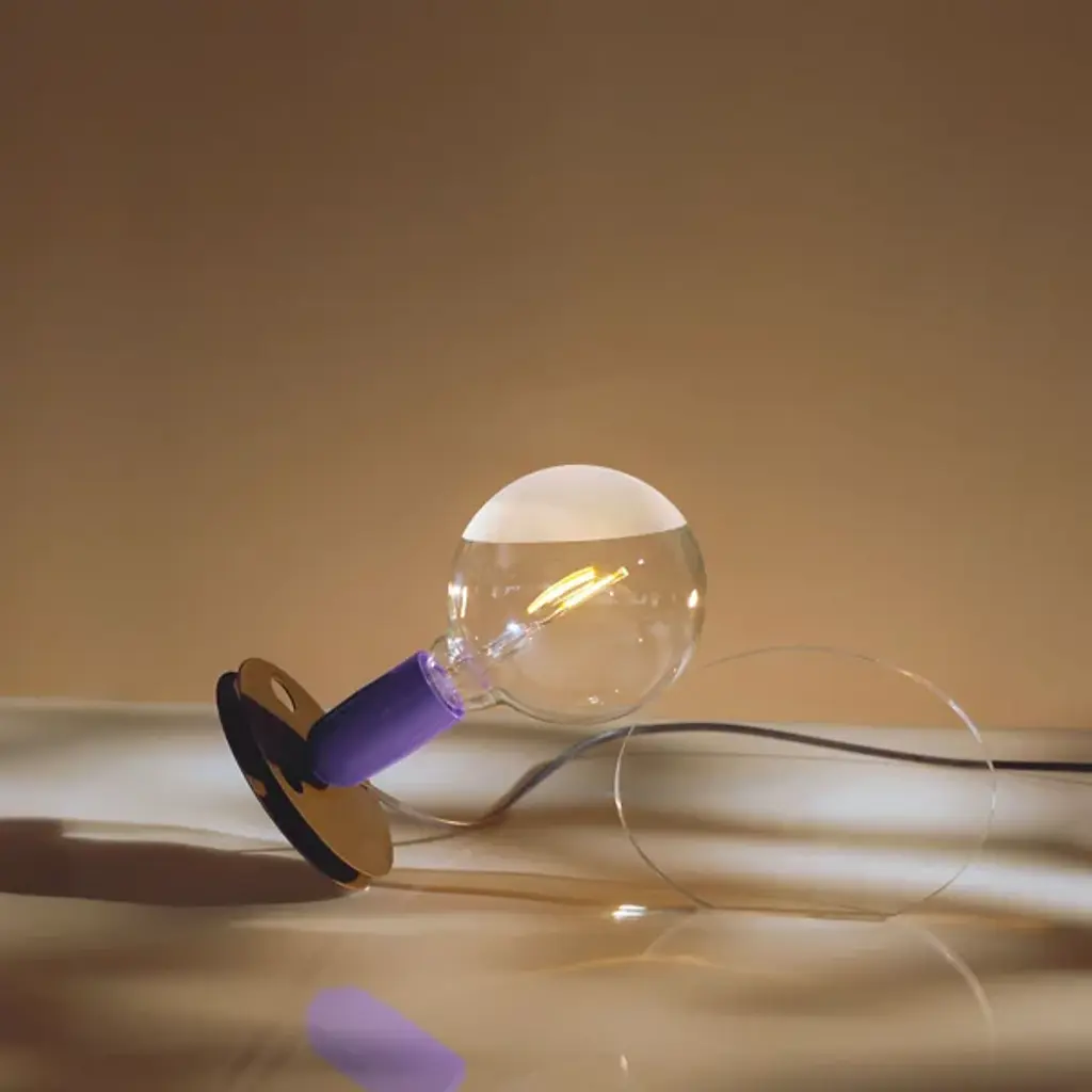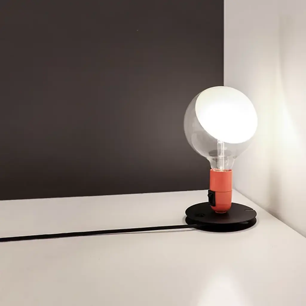 Partially sandblasted to diffuse a portion of the light, the Flos Lampadina Table Lamp is a fun mix of quirky contemporary design and functional task lighting. Its cord winds up around the lamp base for simple storage when not in use. The socket includes an on/off switch and is made of Bakelite that has been finished in either Black or Orange.