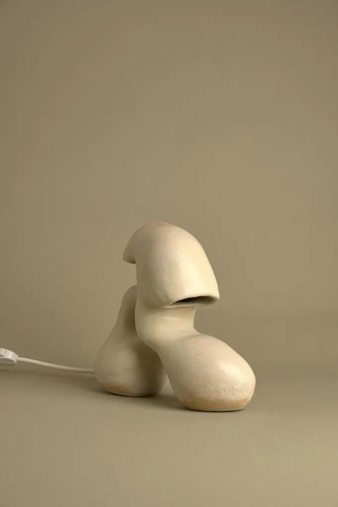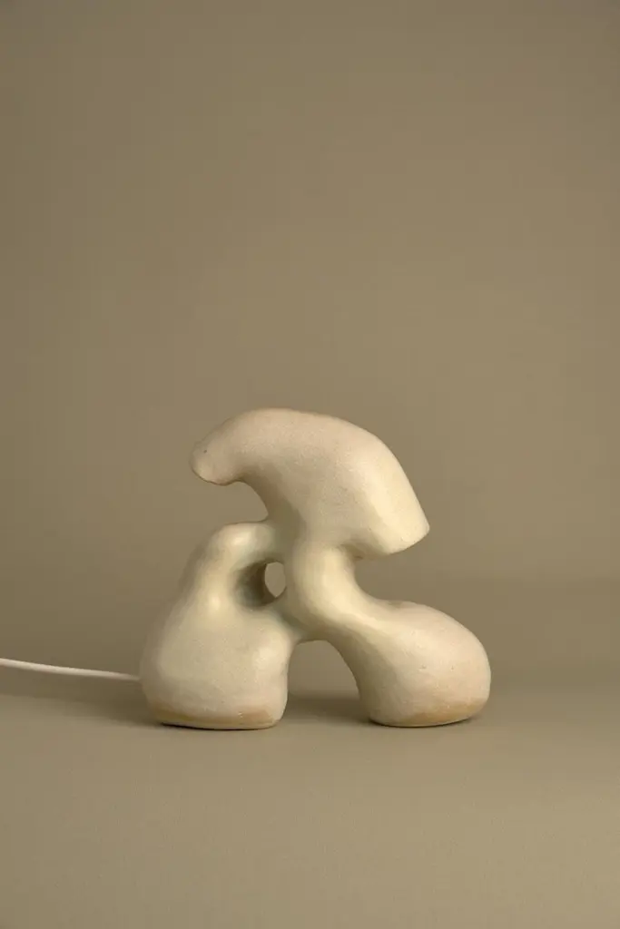 Lamparas stoneware lamp by Camila ApaezOne of a kindMaterials: StonewareDimensions: H23.5x W26.04 x D10.16 cmAll our lamps can be wired according to each country. If sold to the USA it will be wired for the USA for instance.This year has been shaped by the topographies of our homes and the uncertainty of our time. We have found solace in the humbleness of silence and warmth in the light that glared through our windows. We walked through the night, stumbled upon our sleeplessness and were also mesmerized by all our unanswered questions and in conformities.From the intimacy of our bedrooms and living rooms, from the privacy of our own anxieties and fears, we have been transformed. Let the essence of the pause, parenthesis and silence that rose among turmoil, permeate our innermost places forever on.In memory of the times that have not yet ended, but with our sight posed on the space that is yet to open wide, we share with you our last impulse to create new landscapes for our home.Ila Ceramica emerged from a process of inner inquiry where ceramics became a space for presence, silence, touch and patience. Camila discovered the shapes that inhabit her in an organic and intuitive manner, leading her to continuous research and development of Material, processes, and also herself. What began as a silent personal journey, has turned into a place where poetry, nature and corporeal silhouettes meet as constant themes in Ila´s creative process. The conversations between the pottery wheel and manual construction derive into utilitarian and sculptural pieces, hosted in two main lines of work: “Centrifuga”: functional ware for everyday life, and “Manual”: sculptural pieces that, while still functional, highlight their presence and their own dialogue with space, a constant theme for reflection in ILA. Ila Ceramica is a small studio with 100% handcrafted creative processes; glaze and clay research is slow and thorough, and no casts are used. Although pieces can be made Based Upon previous designs, each piece has its own personality.