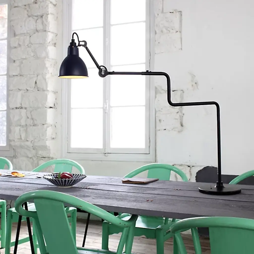 A sleek, ultra-adjustable construction, the Lampe Gras 317 Table Lamp by DCW editions offers stylish task lighting buoyed by a timeless silhouette. Designed in 1921 by Bernard-Albin Gras, this thoughtful update uses a simple, switched disc base to send up a single matte-textured steel arm with several pivot points. The arm then extends in a small, articulated rod and curved metal shade with a single socket set inside, dispatching a tight beam of light easily tailored to its surroundings.