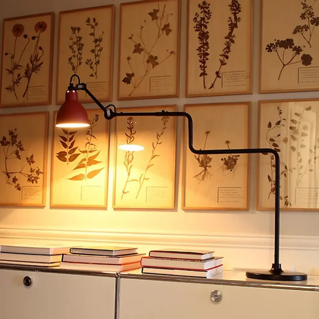 A sleek, ultra-adjustable construction, the Lampe Gras 317 Table Lamp by DCW editions offers stylish task lighting buoyed by a timeless silhouette. Designed in 1921 by Bernard-Albin Gras, this thoughtful update uses a simple, switched disc base to send up a single matte-textured steel arm with several pivot points. The arm then extends in a small, articulated rod and curved metal shade with a single socket set inside, dispatching a tight beam of light easily tailored to its surroundings.
