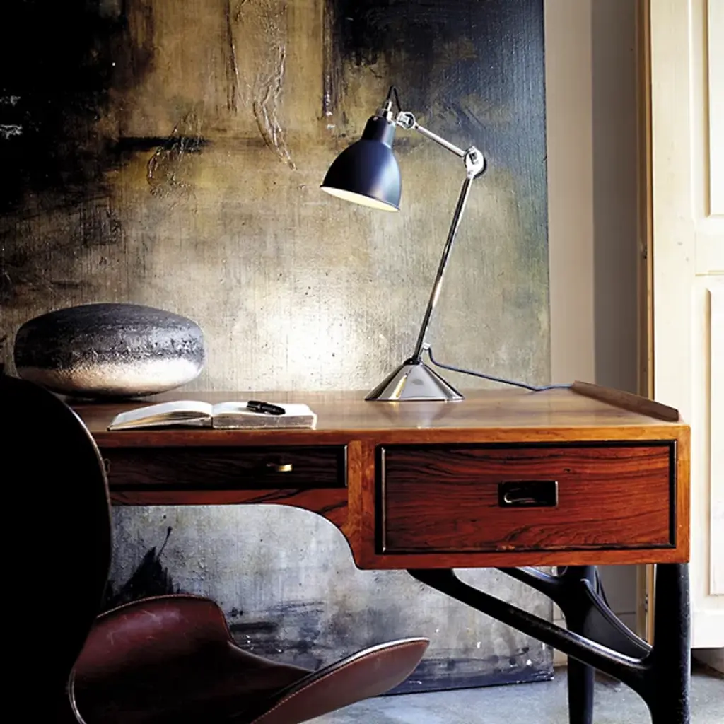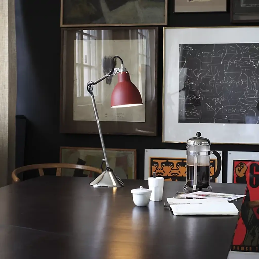 An elegant addition to table, desk, or bedside with a timeless character. Get acquainted with the Lampe Gras No 205 Table Lamp by DCW Editions. A recent update to the 1921 design from the brilliant mind of Bernard-Albin Gras, this industrially-styled fixture uses a conical base and articulated arm to retain a rounded shade and the single candelabra-base socket inside it. This arrangement reduces glare from the lamping while leaving a posable pool of light directly at your disposal.
