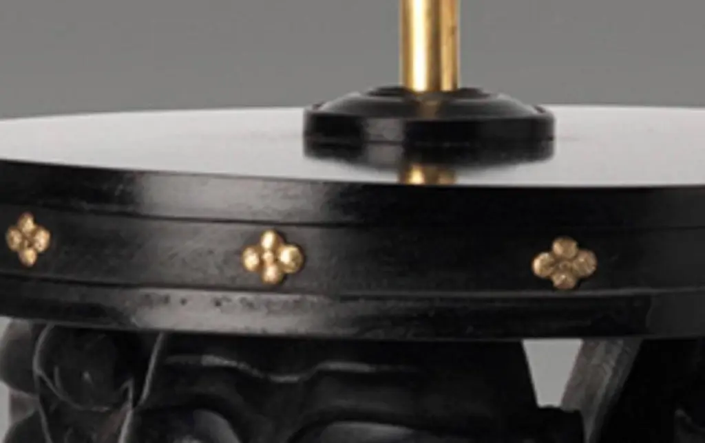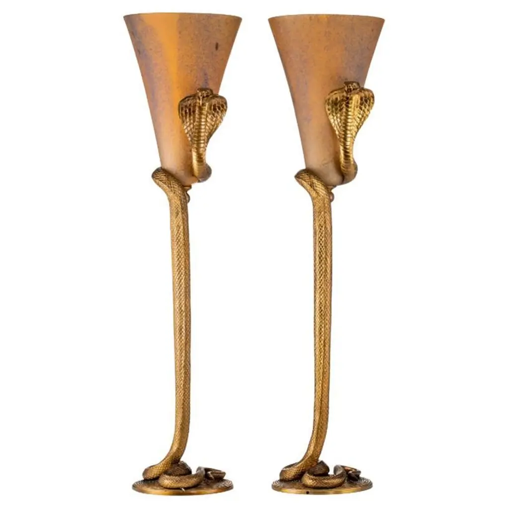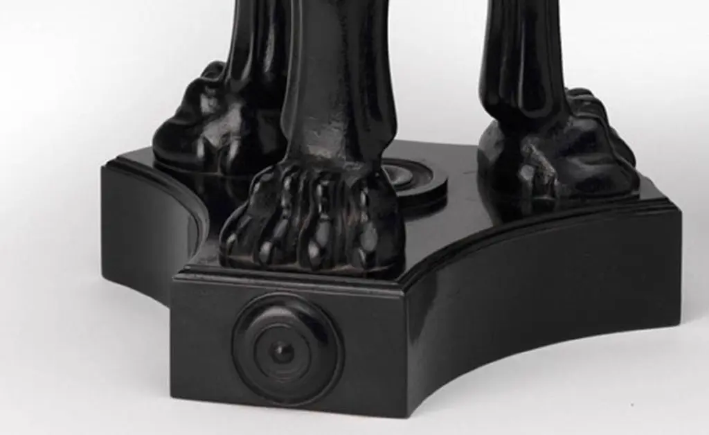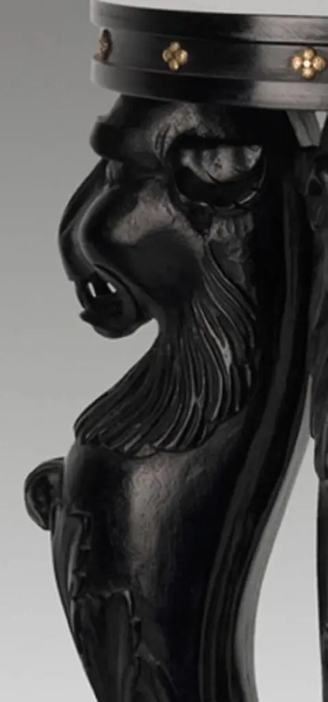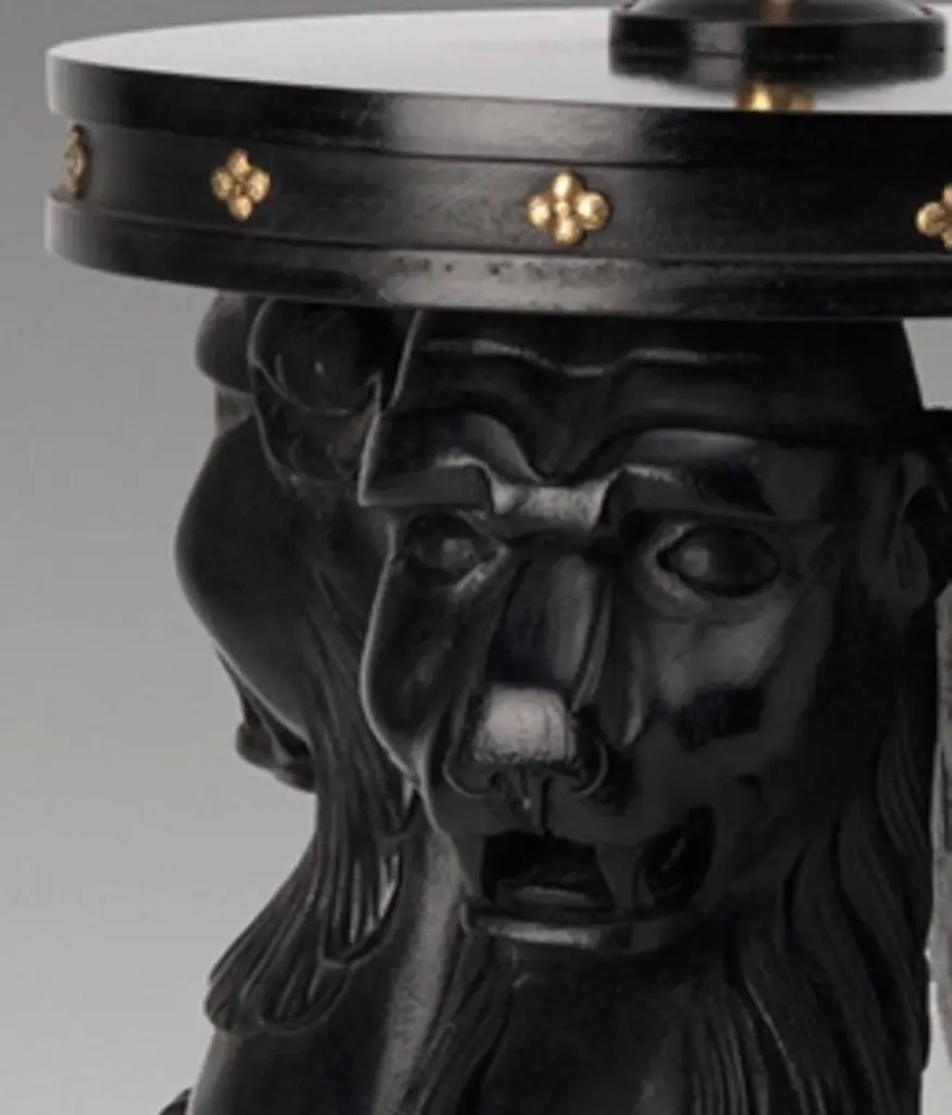A fine pair of Regency lamps with three carved stylized leopard supports, platform bases and turned ring tops with ormolu stud decoration.We are currently working to a 30-36 week lead time.