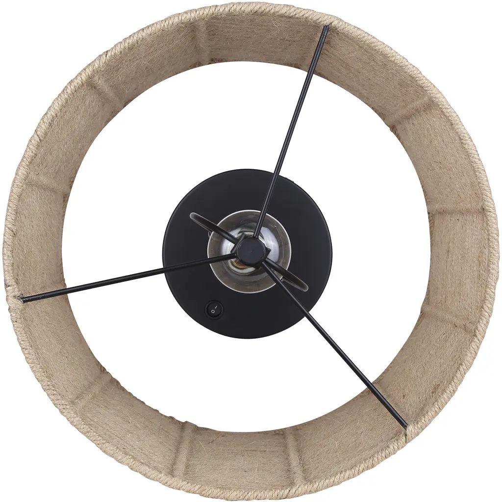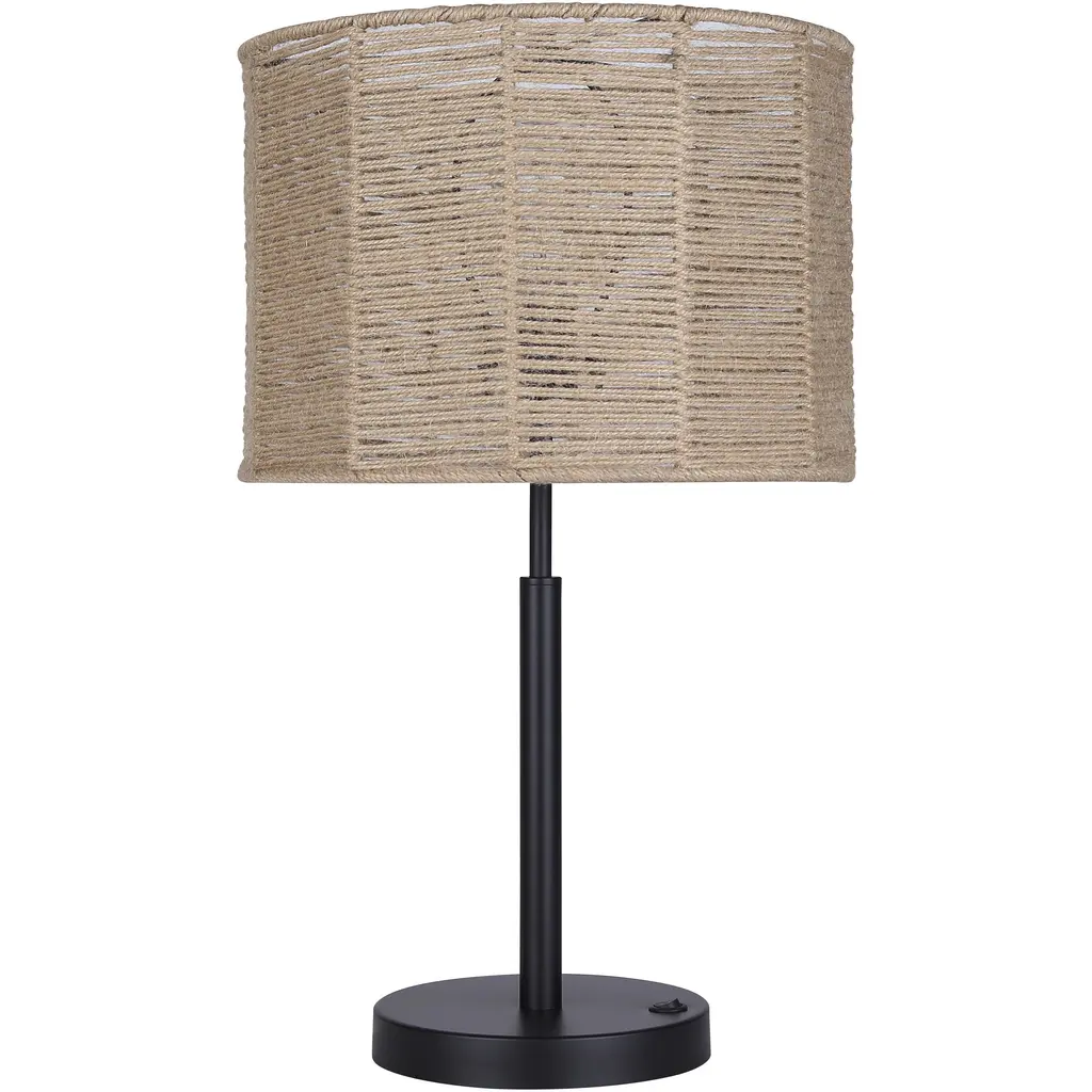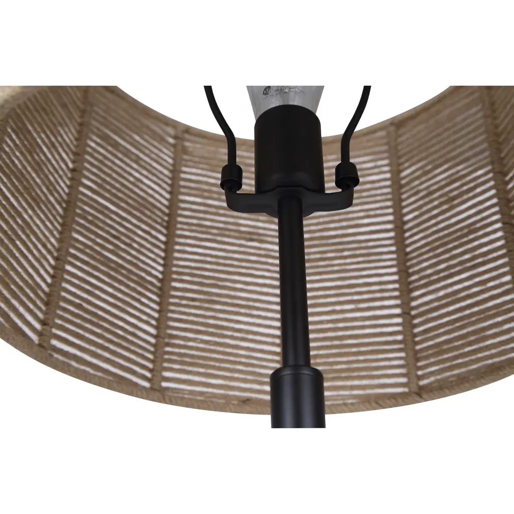 Introducing our sophisticated Matte Black Table Lamp with a distinctive rope shade, blending modern design with functional accent lighting. Standing tall at 24 inches high with a base width of 13.75 inches, this lamp makes a stylish statement in any room. The rope shade adds a unique texture, enhancing its contemporary appeal while diffusing light softly for a warm ambiance. Equipped with a convenient On-Off Switch on the base and accommodating a 60W Type A bulb (not included), it offers both ease of use and versatility in creating the perfect atmosphere. Elevate your decor with this sleek and functional table lamp, ideal for adding a modern touch and effective accent lighting to your home.