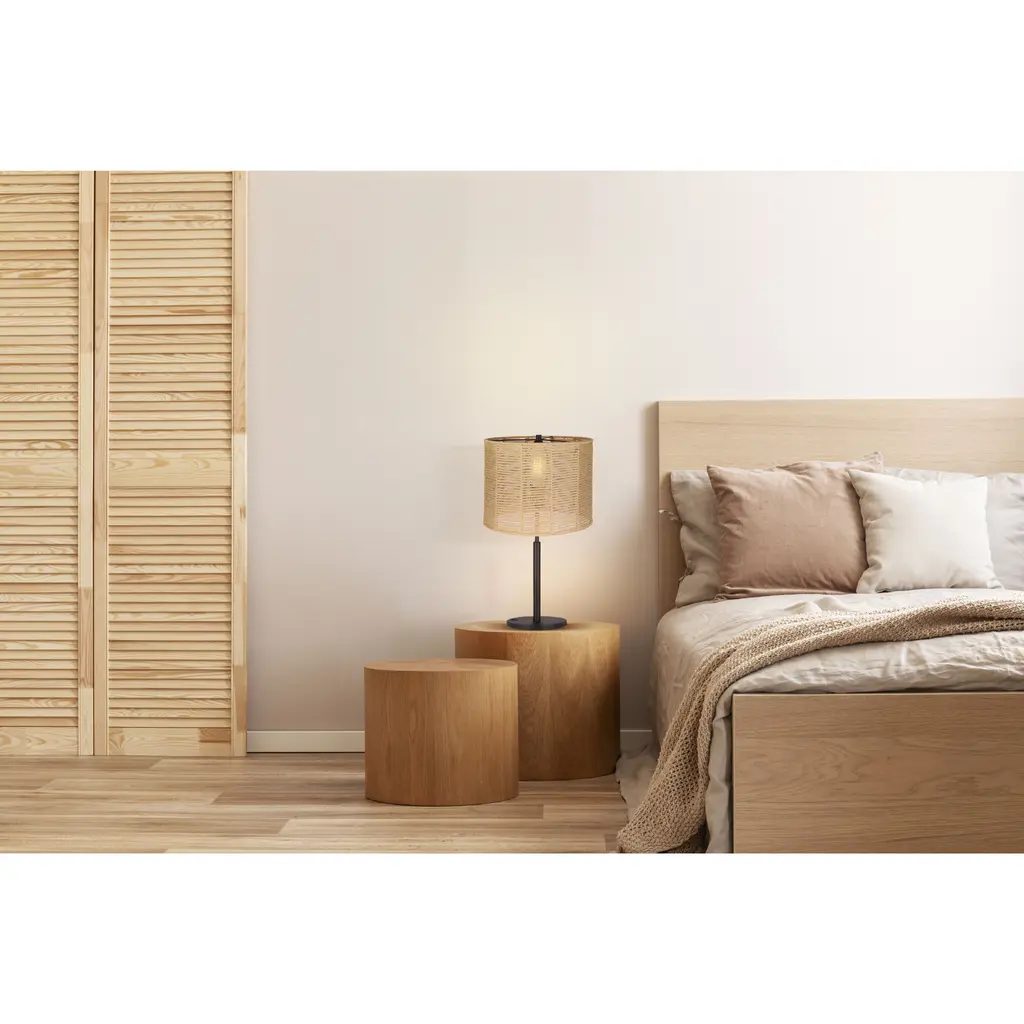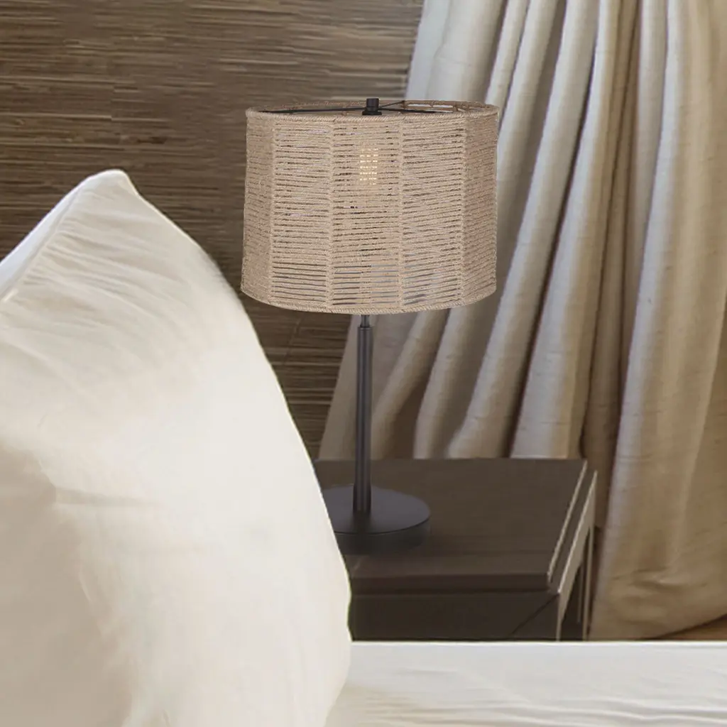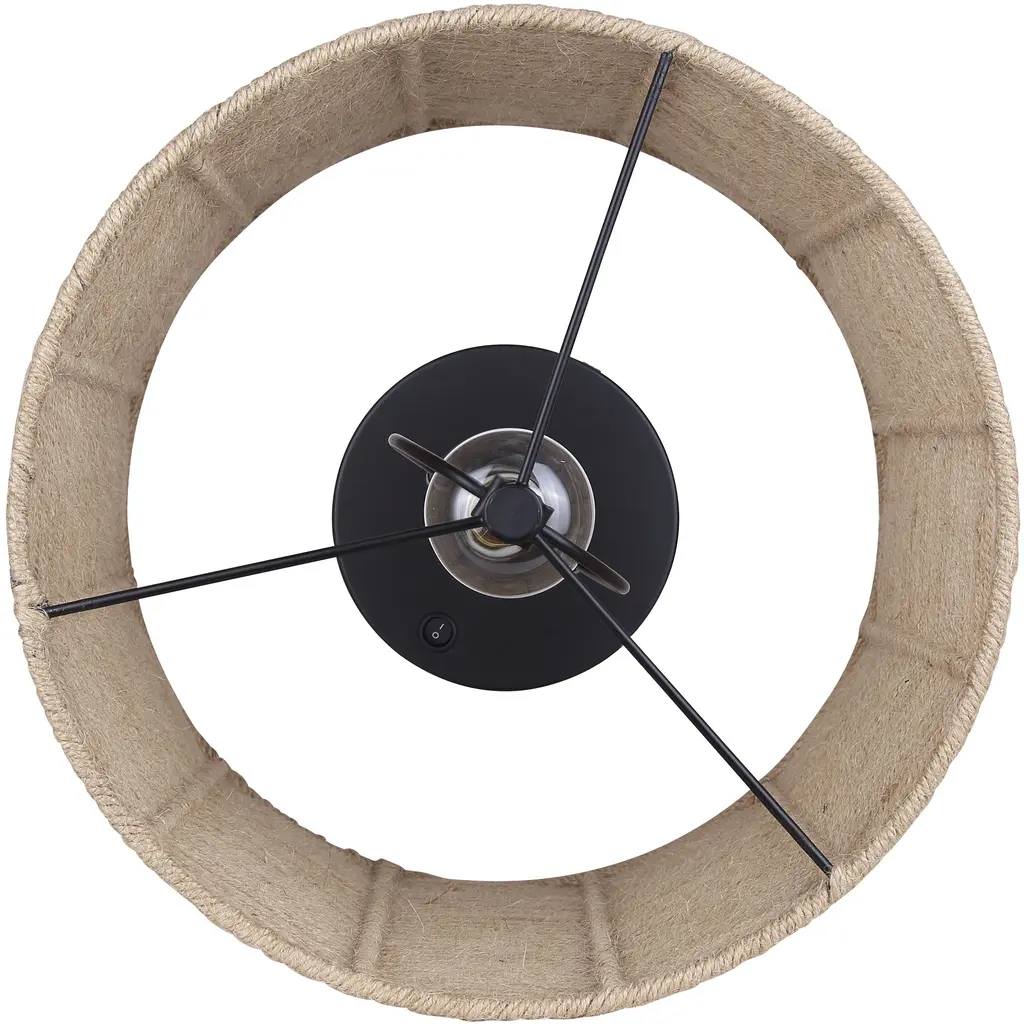 Introducing our sophisticated Matte Black Table Lamp with a distinctive rope shade, blending modern design with functional accent lighting. Standing tall at 24 inches high with a base width of 13.75 inches, this lamp makes a stylish statement in any room. The rope shade adds a unique texture, enhancing its contemporary appeal while diffusing light softly for a warm ambiance. Equipped with a convenient On-Off Switch on the base and accommodating a 60W Type A bulb (not included), it offers both ease of use and versatility in creating the perfect atmosphere. Elevate your decor with this sleek and functional table lamp, ideal for adding a modern touch and effective accent lighting to your home.