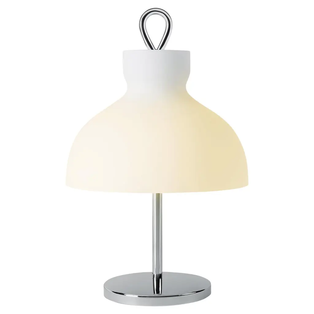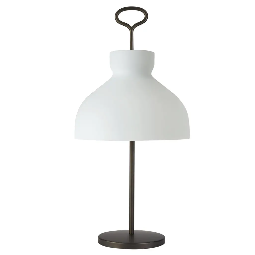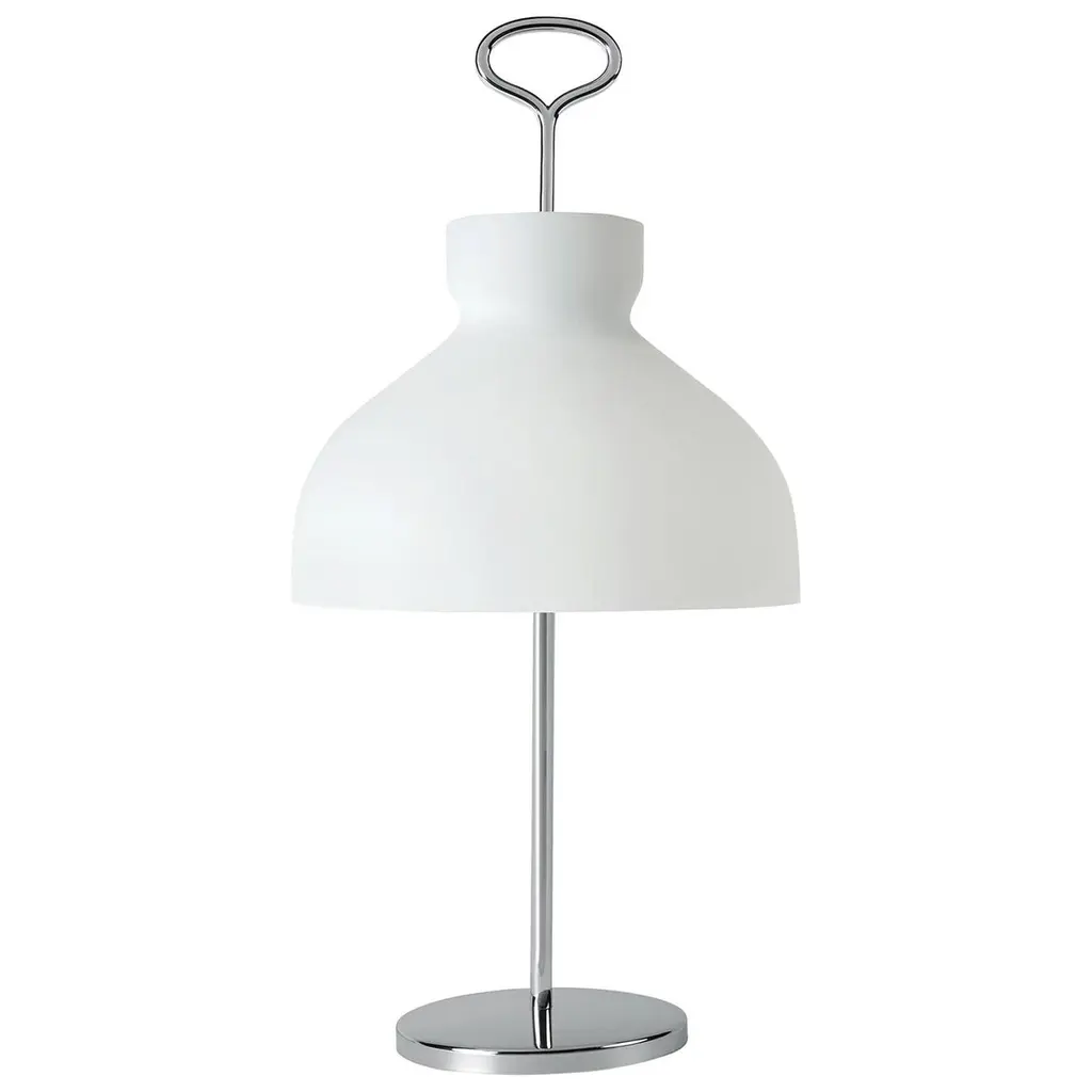 Large Ignazio Gardella 'Arenzano' Table Lamp in Satin Nickel and Glass.Ignazio Gardella was one of the leading figures in Italian 20th-century architecture. A graduate of the Politecnico di Milano, he founded Azucena with Luigi Caccia Dominioni and Corrado Corradi Dell’Acqua in 1947. A renowned architect, he continued producing iconic furniture and lighting designs until the 1990s.Originally designed by Gardella in 1956 for Azucena, this authorized Tato Italia re-edition is executed in nickelled metal with a white opaline glass diffuser.Price is per item. Available in unlimited quantities in choice of brass, chrome, satin bronze, or satin nickel. Shade available in white or, for an additional fee, green opaline glass. This listing is for the satin nickel variant with white glass shade.In stock lead time 12-14 weeks. Out of stock lead time can add an additional 10 weeks or longer. Please note that inventory availability subject to change without notice. For time-sensitive orders, kindly inquire prior to purchasing.Accommodates 3x US E12 candelabra base bulbs max 4W LED, not included. Not UL listed, but recommended UL listing possible from an authorized 3rd party vendor for an additional cost. Contact us for more information.Made to order. All sales final.